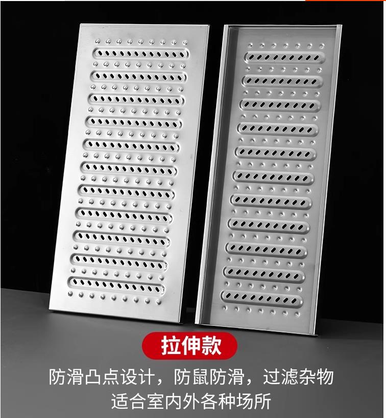 不锈钢排水沟盖板是一种广泛应用于酒店、学校厨房,农贸市场、超市、公共广场、园林景观工程等场所的排水设施,具有高强度、轻结构、防腐能力强、外形美观等特点。它采用不锈钢材质制作,表面经过处理,不易积污物,易于维护,通风、防滑性能好。