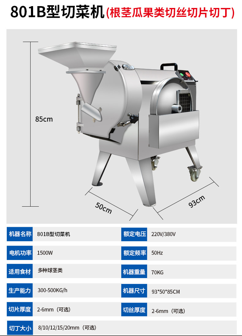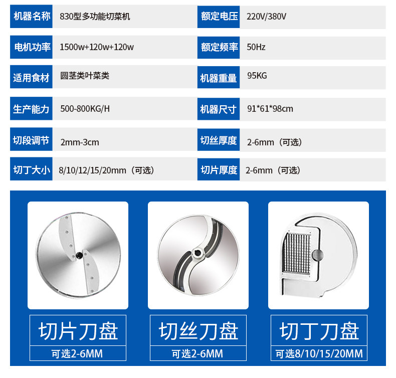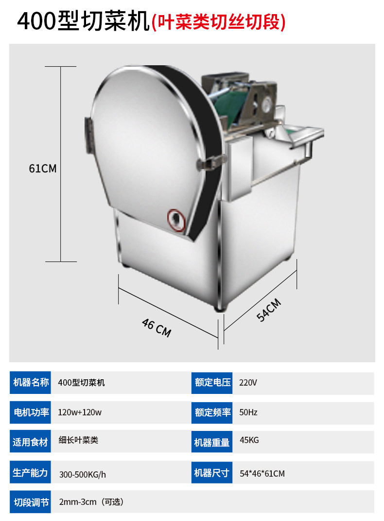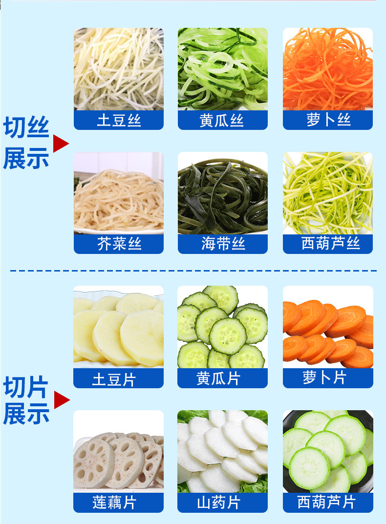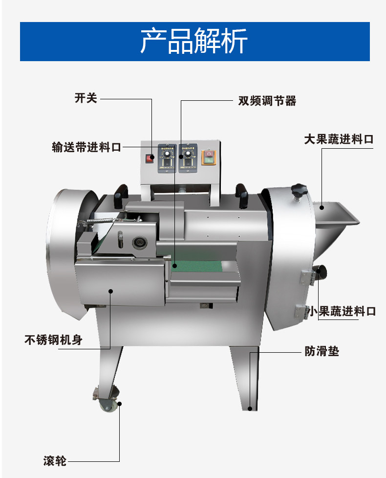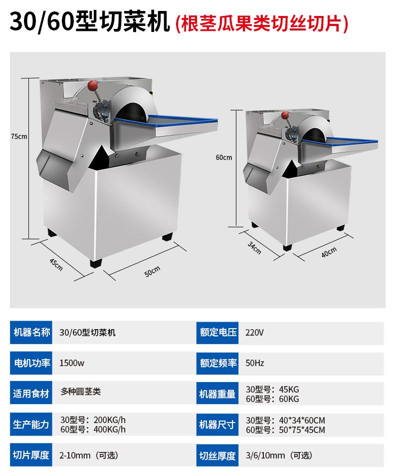 ①本机为单头型切菜机,使用快捷方便;