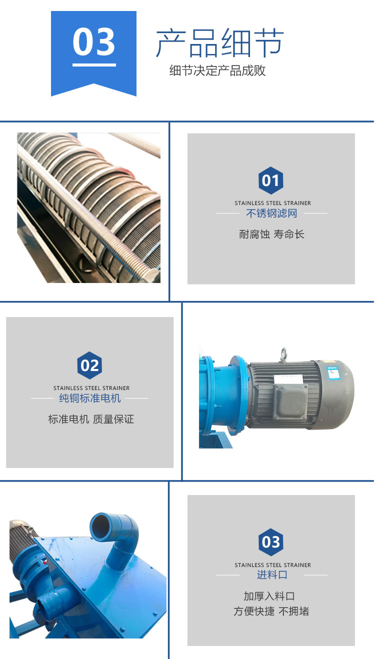 挤压式固液分离机作为配套沼气工程中的沼渣沼液固液分离,屠宰污水的固液分离、木材企业的污水处理、以及制革污水、洗毛印染污水的脱水分离。