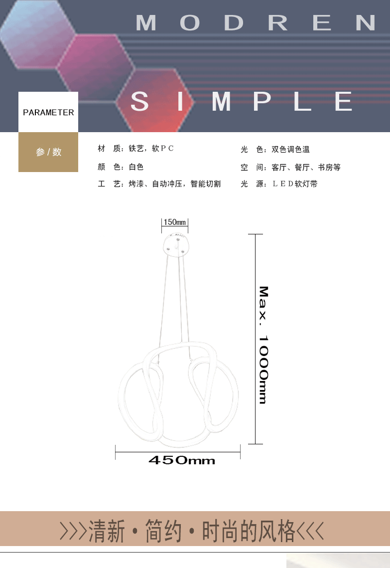 简约led吊灯双面发光软pc耐热双色哑白双色个性创意客厅卧室书房