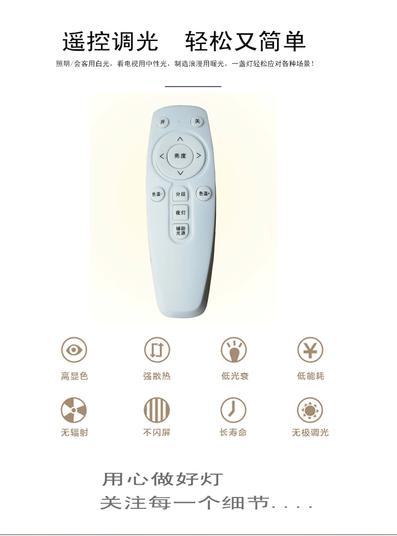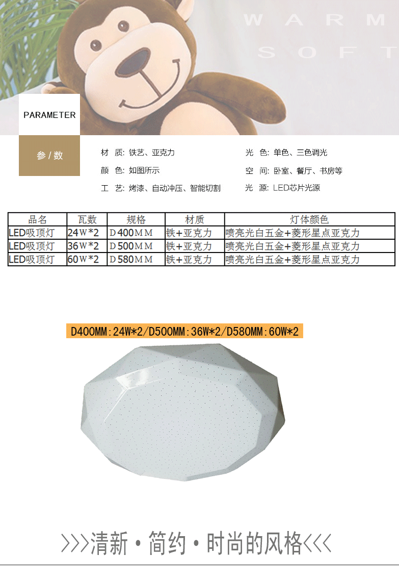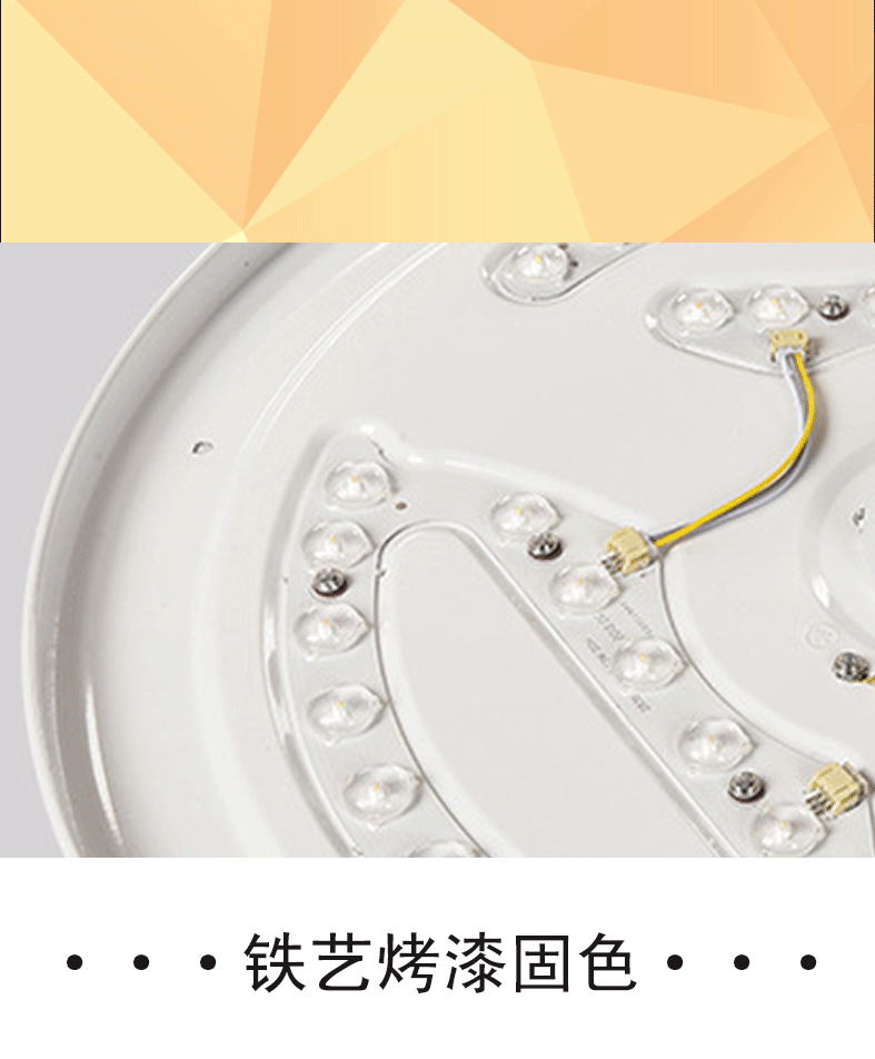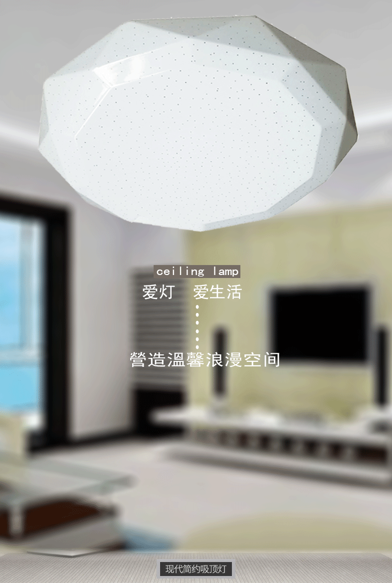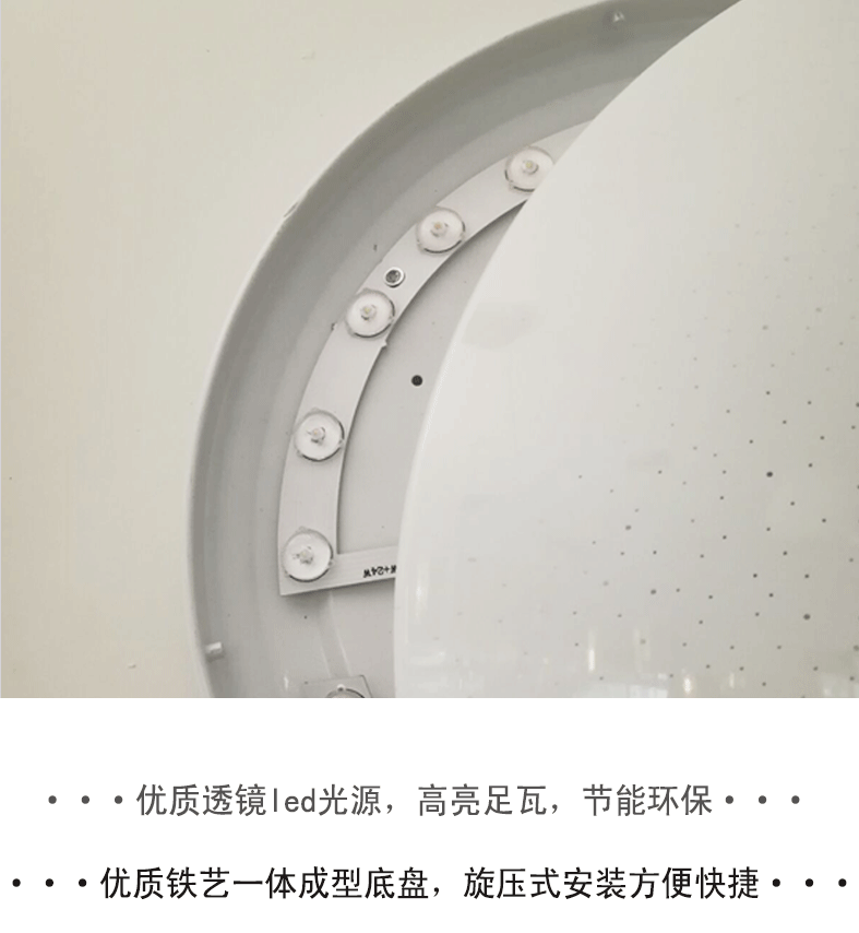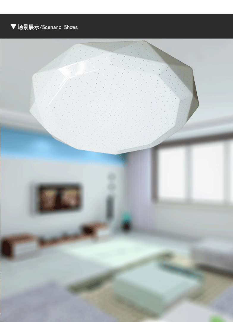 本产品为LED亚克力吸顶灯,产品不褪色,易清洗,耐高温,光度明亮而舒适,适用于室内家居照明,如客厅,卧室,书房,餐厅等地方安装