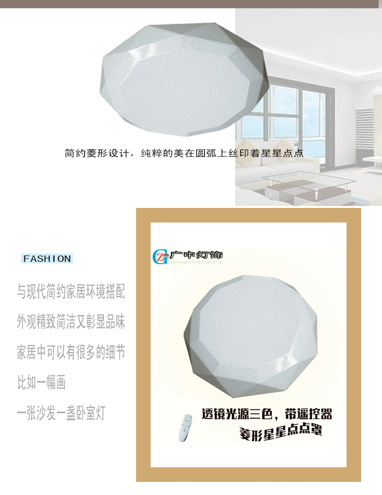 现代led亚克力吸顶灯菱形星点罩三色带遥控器卧室走廊阳台书房