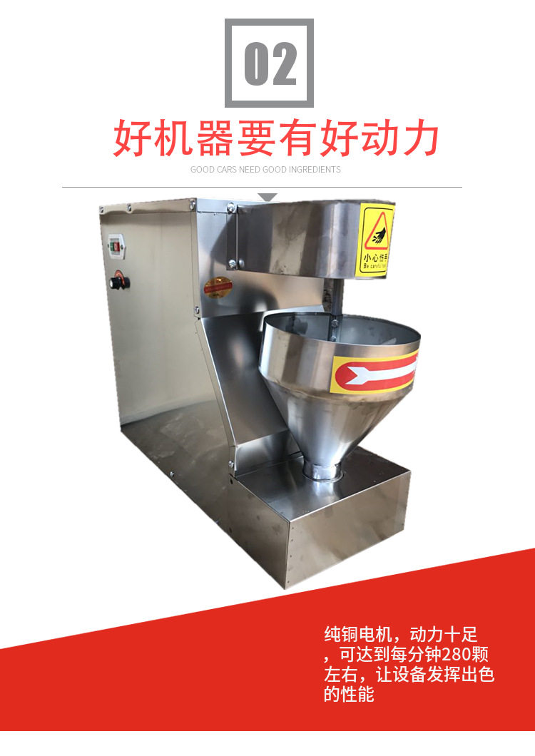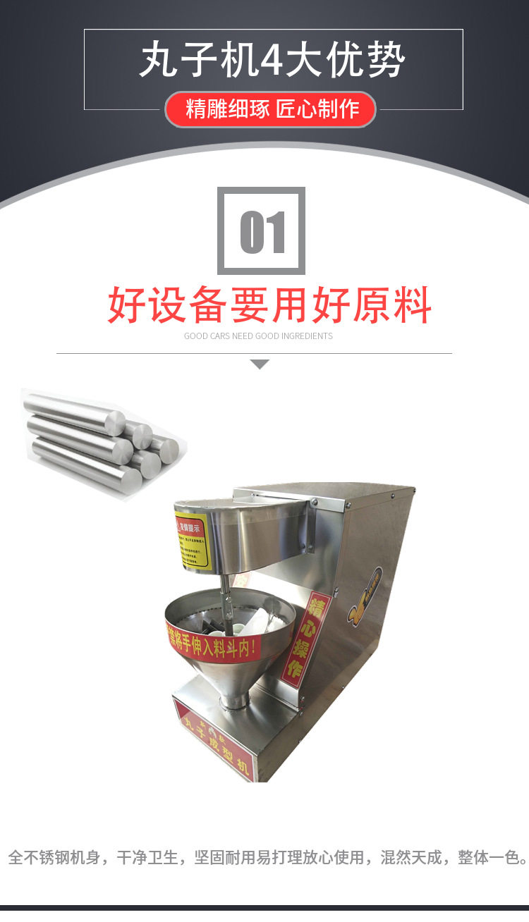 3.用户需提前将准备做丸子的料调好,放入机器料斗,打开机器就可做丸子。如有不懂随时致电或者与厂家进行视频聊天咨询技术问题。