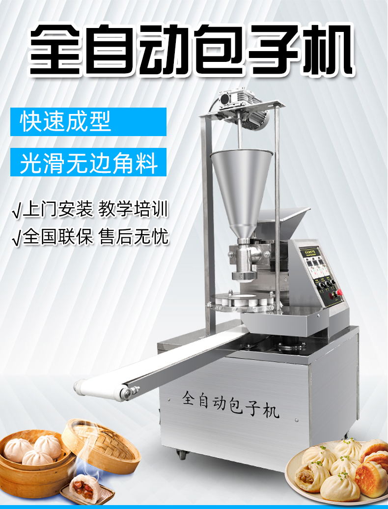 1、自动包子机器改进型机头,进品双变频,性能更稳定。