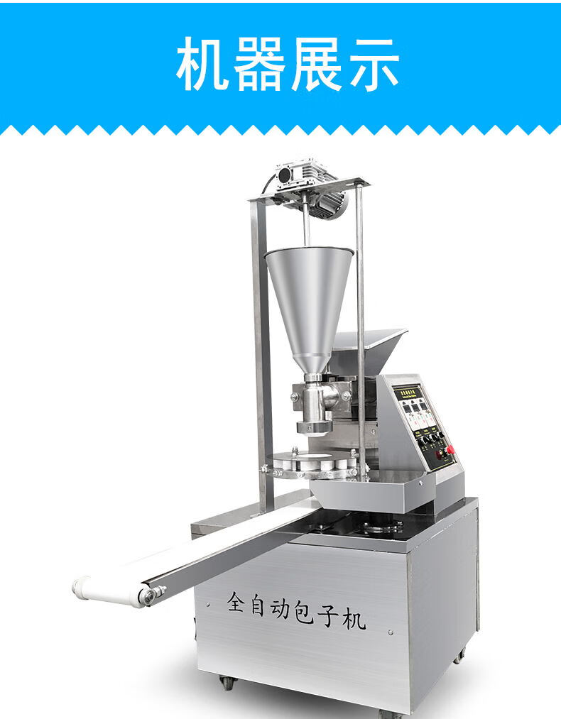 2、多功能包子机先进的输面、进馅系统,充分保护面的筋道,真正不伤面,保证包子质感,输馅流畅、均匀,不论何种馅料均能使包子成型效果。