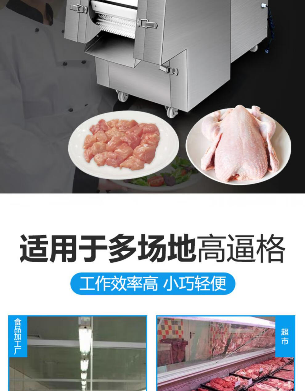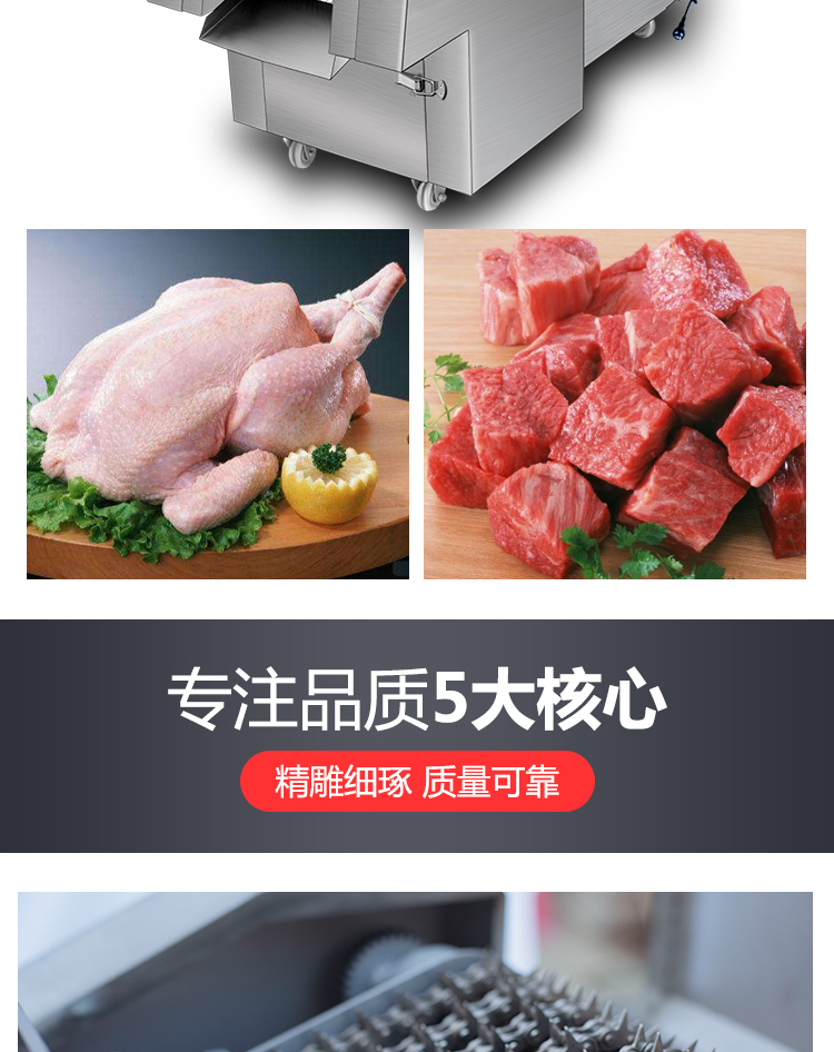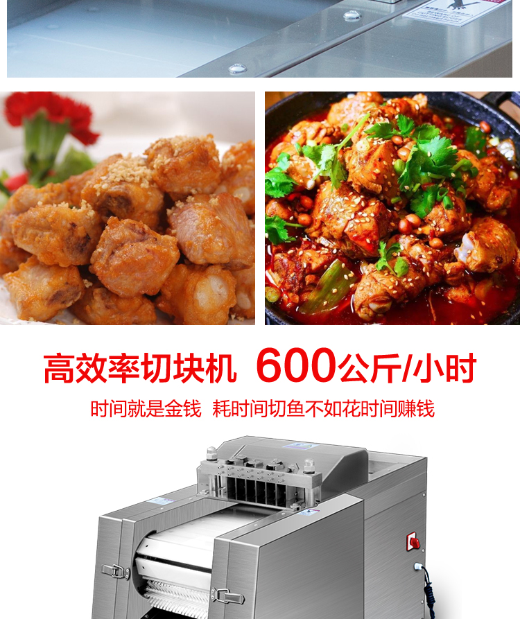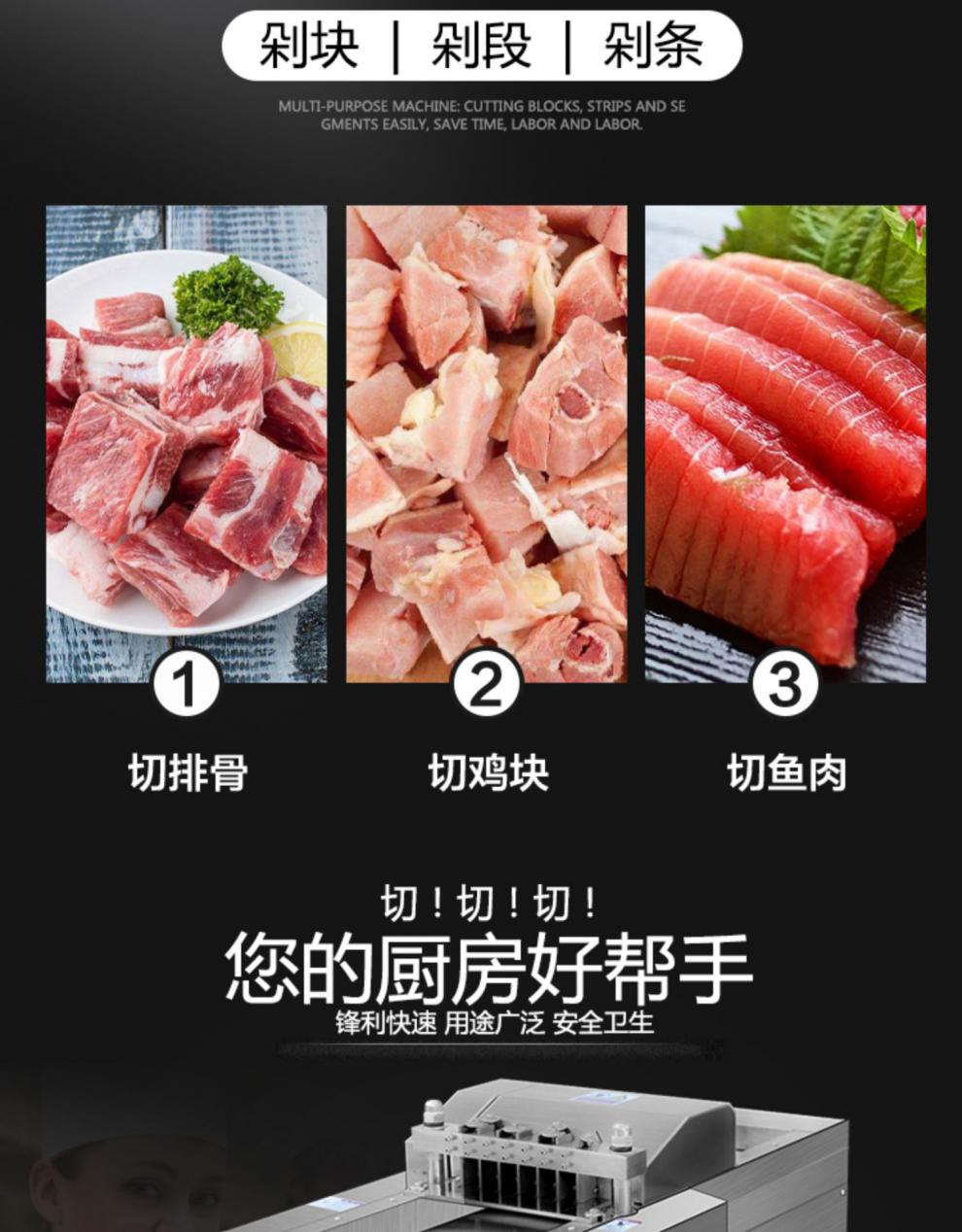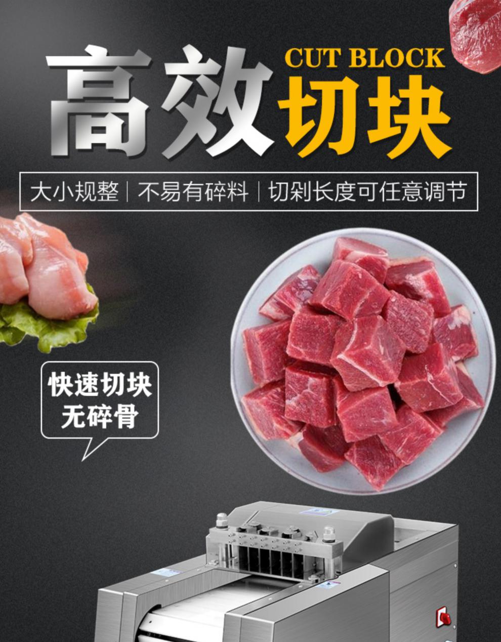 我厂生产的自动剁鸡块机,剁排骨机使用寿命长,可以针对新鲜的带骨头或不带骨头的小动物切条,切块。把原料投入入料口就可以切出理想的形状,剁鸡块机价格低使用简单,电动剁鸡块机没有任何技术含量,一人就可以操作。电动剁鸡块机容易清洗,安全卫生,马力大动力强,小型剁鸡块机具有结构紧凑、外形美观、操作简便、效率高、自动剁鸡块机耗电小、清洁保养容易、效果好等优点。可广泛用于宾馆、酒店、食品加工厂、屠宰场。有关更多设备的详情,欢迎随时来电咨询,期待与您的合作。