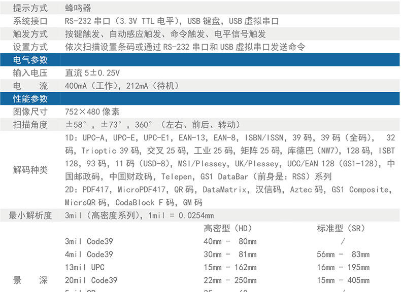 | 支持条码类型 |