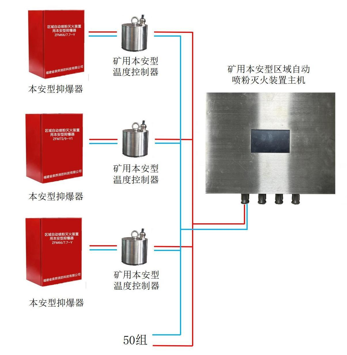 矿用区域自动喷粉灭火装置用抑爆器主要适用于煤矿井下工作场所用于煤矿防护区域火灾灭火,抑爆器单独使用时,通过报警系统或启动按钮手动启动灭火,与K770矿用本安型温度控制器搭配使用时,可自动探测温度,当防护区温度达到设定值时,启动物爆器灭火:抑爆器与KNP24矿用本安型区域自动灭火装胃控制箱、m70矿用本安型温度控制器配套使用时,除了温度控制器启动外,还可通过控制箱“手动”启动防护区抑爆器完成灭火。