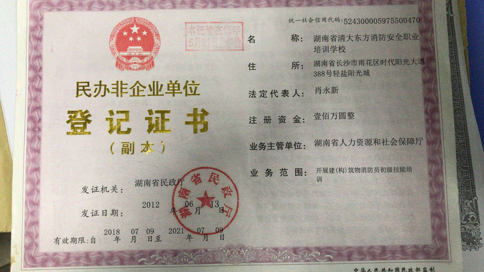 湖南省清大东方消防安全职业培训学校