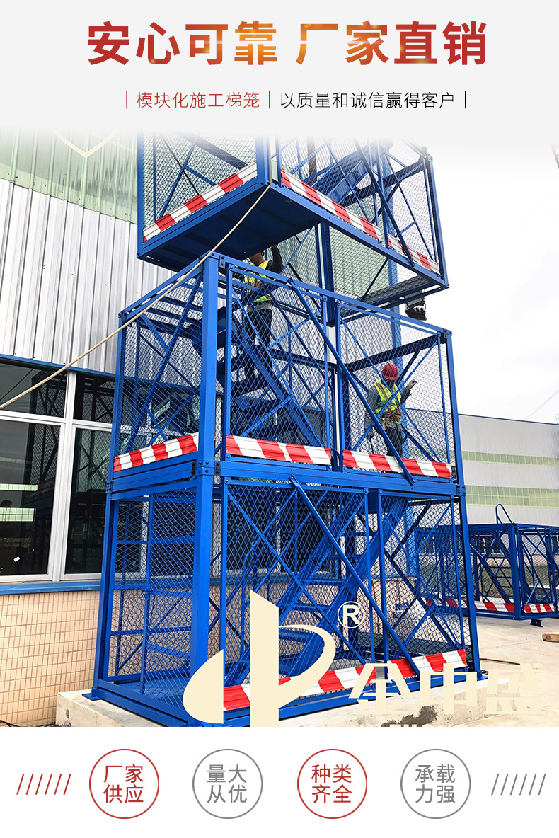 模块化施工梯笼适用于桥梁墩柱及深基坑内部结构施工,作为垂直上下安全通道。产品特点:安全稳固、结构简单、安装方便、外观大方,安全防护设施可靠。