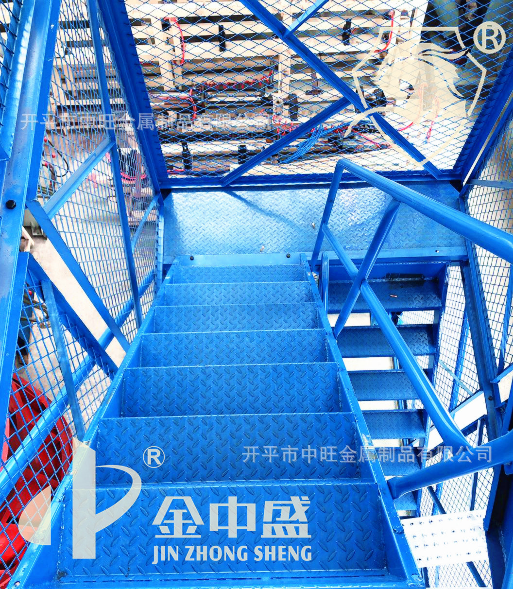 本产品全部由钢结构拼装而组成, 主要构件平台、 接梯等均主要采用焊接工艺, 构件四面独立形成围护体系。钢材采用标准型材,制作严格按图施工,尺寸正确, 焊接牢固,达到安全防护之目的。