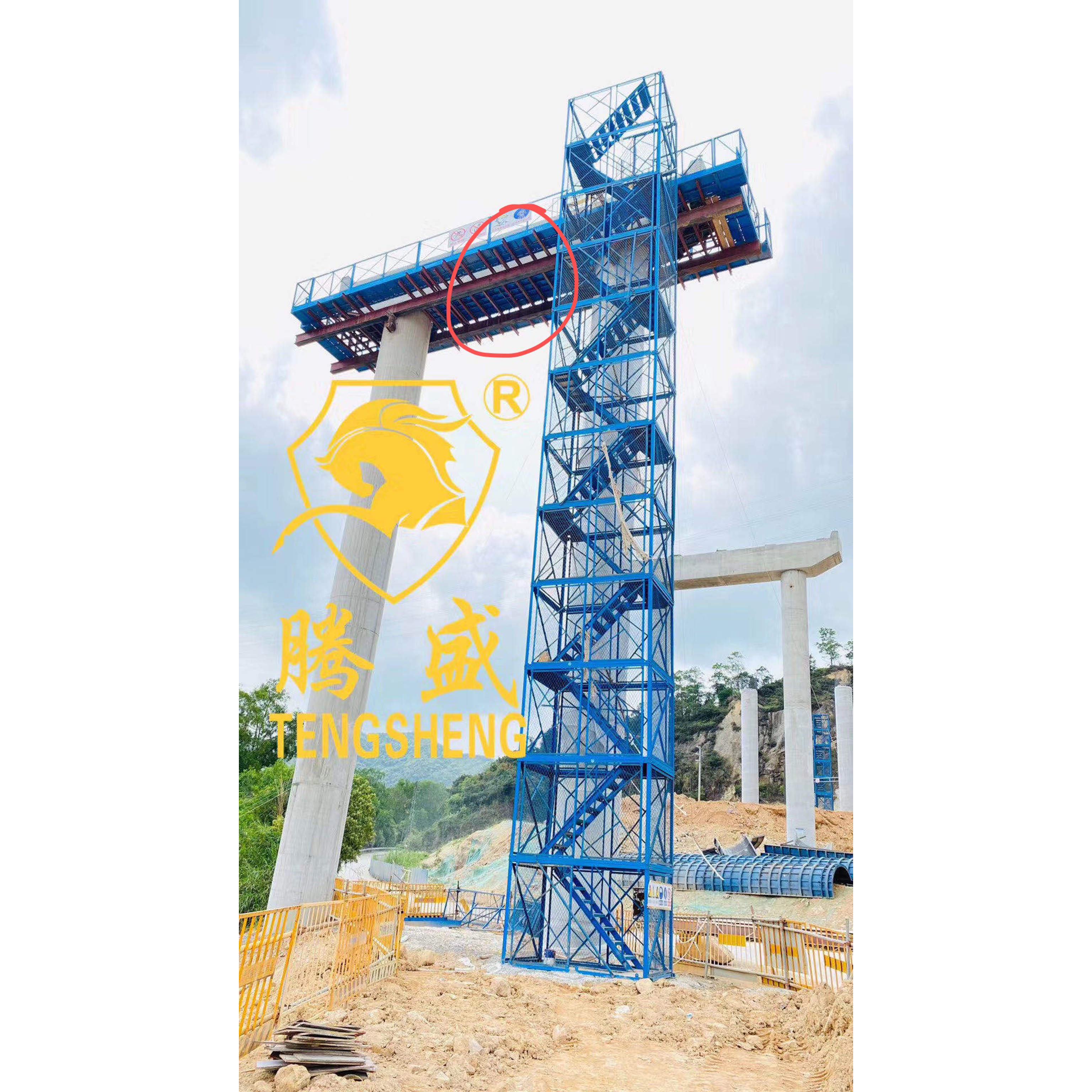 施工安全梯笼是专为高空作业设计的模块化通道系统,由立杆、横杆、平台板及防护组件构成,通过螺栓或插销连接形成稳定的三维结构。其核心功能在于为施工人员提供安全、高效的垂直通行路径,同时具备材料临时堆放功能。以建筑工地常用的4米标准节为例,单节重量约150kg,可承受800kg动态荷载,平台板采用3mm厚防滑花纹钢板,摩擦系数达0.75。梯笼设计遵循“封闭式防护”原则,四周设置1.2m高护栏,立杆间距≤300mm,有效防止人员坠落。在高层建筑外立面施工、桥梁墩柱作业等场景中,施工安全梯笼已成为替代传统脚手架的主流选择,其安装效率较脚手架提升40%,且可重复使用25次以上,显著降低综合成本。