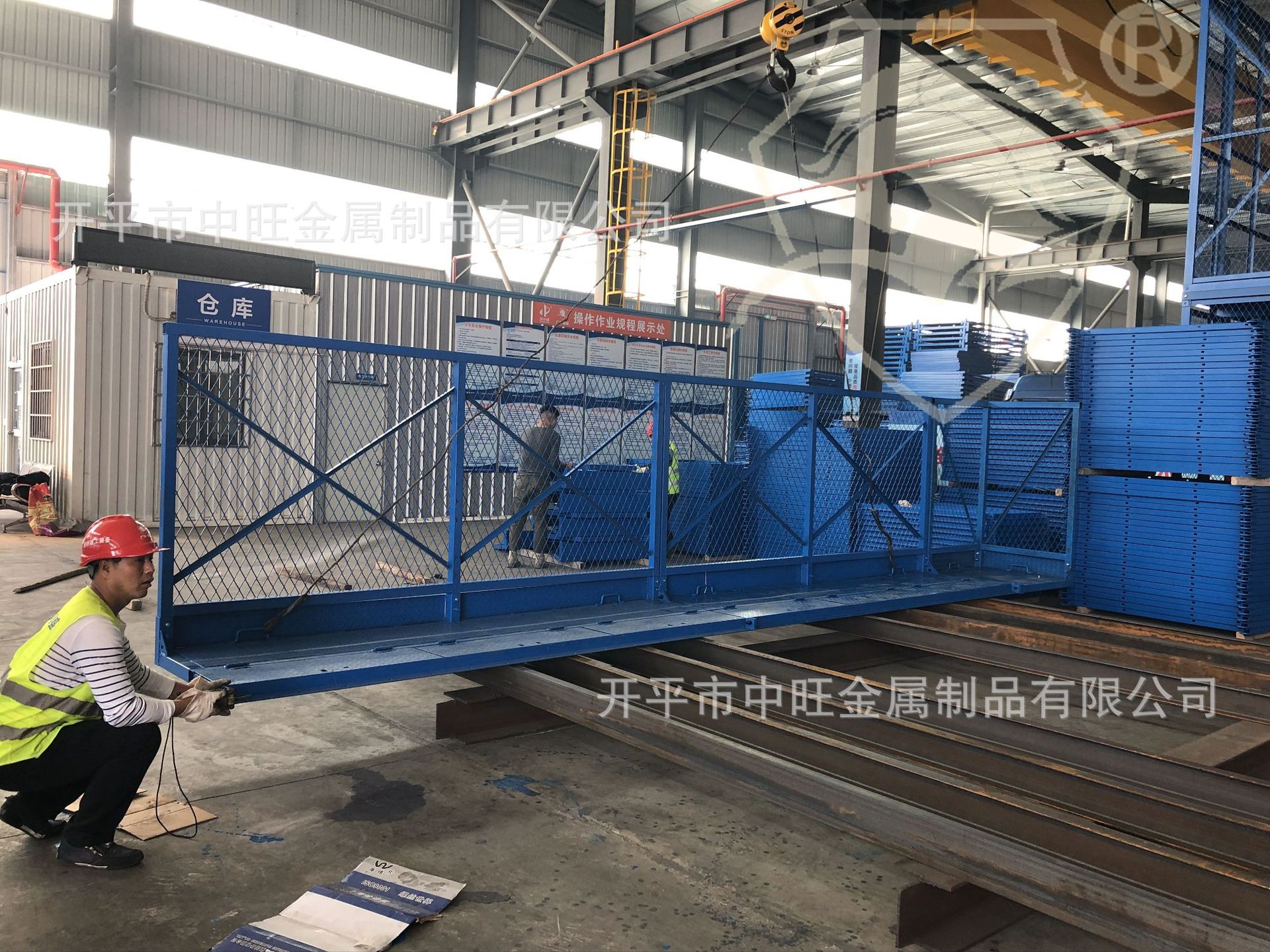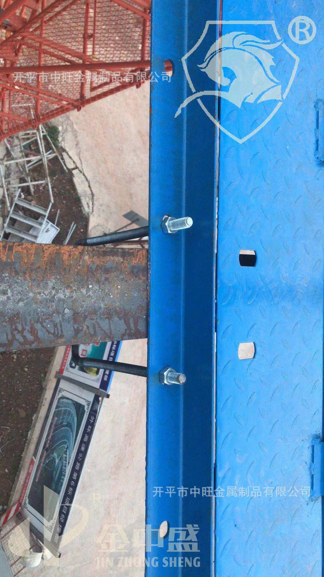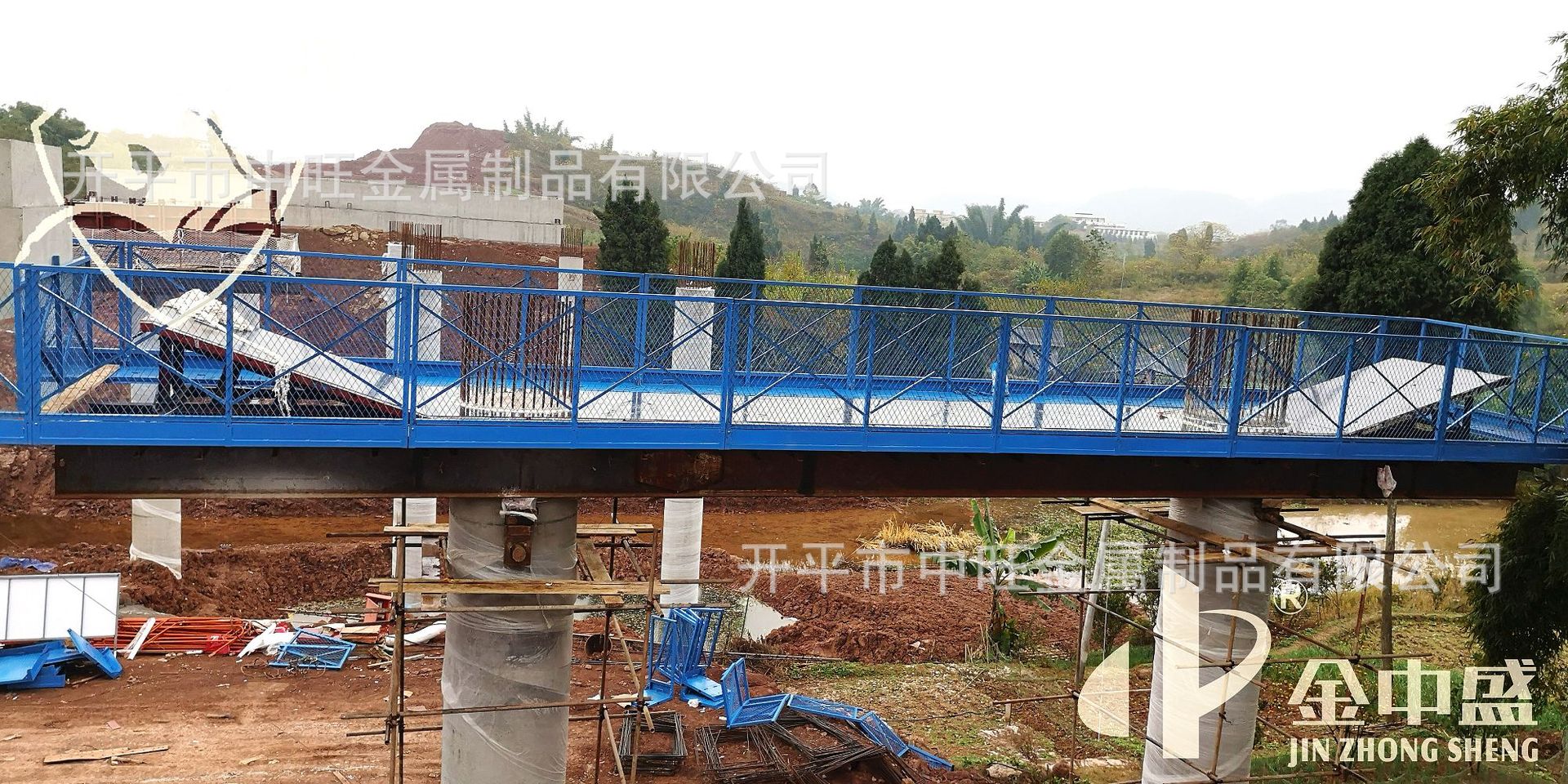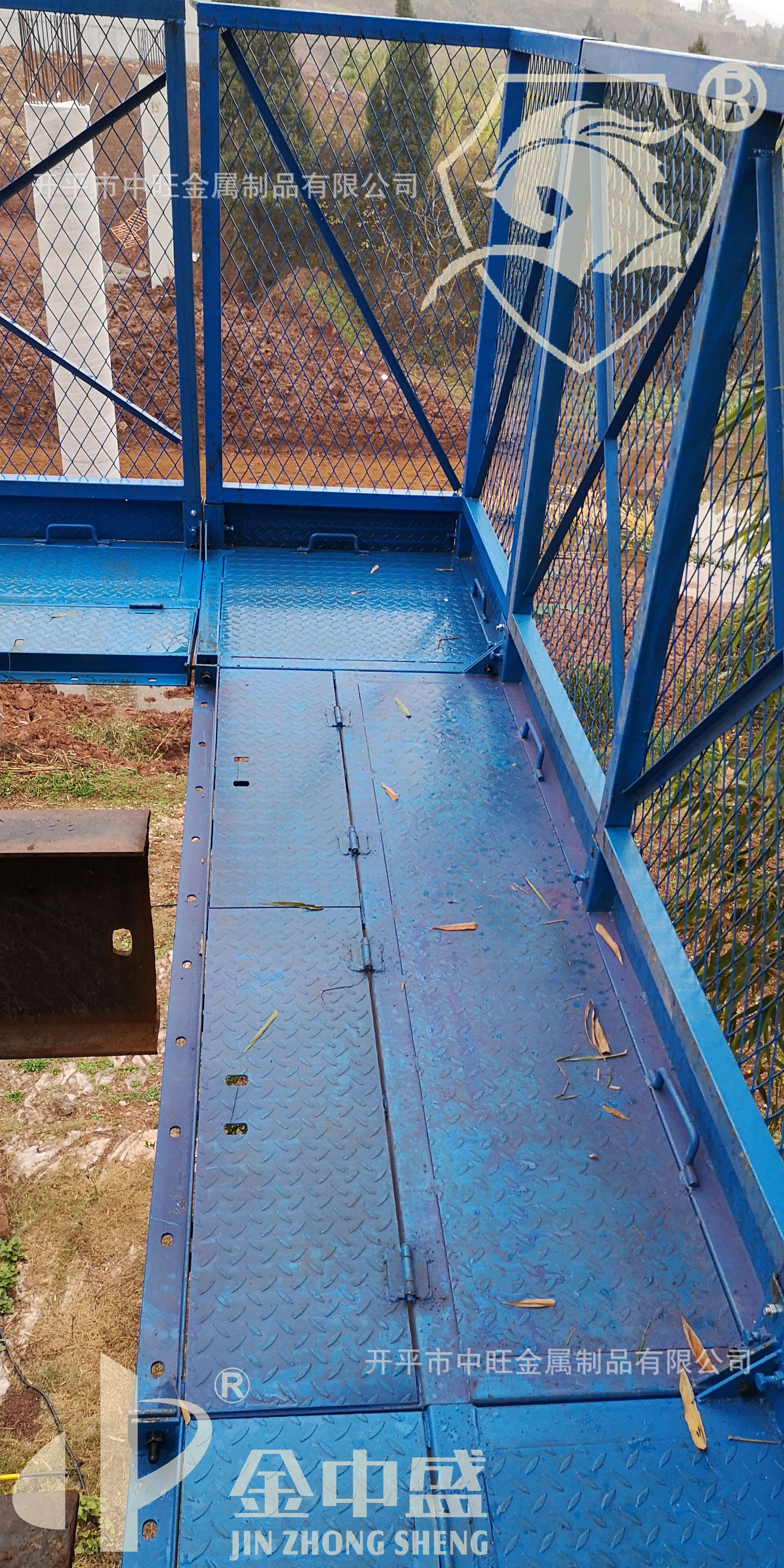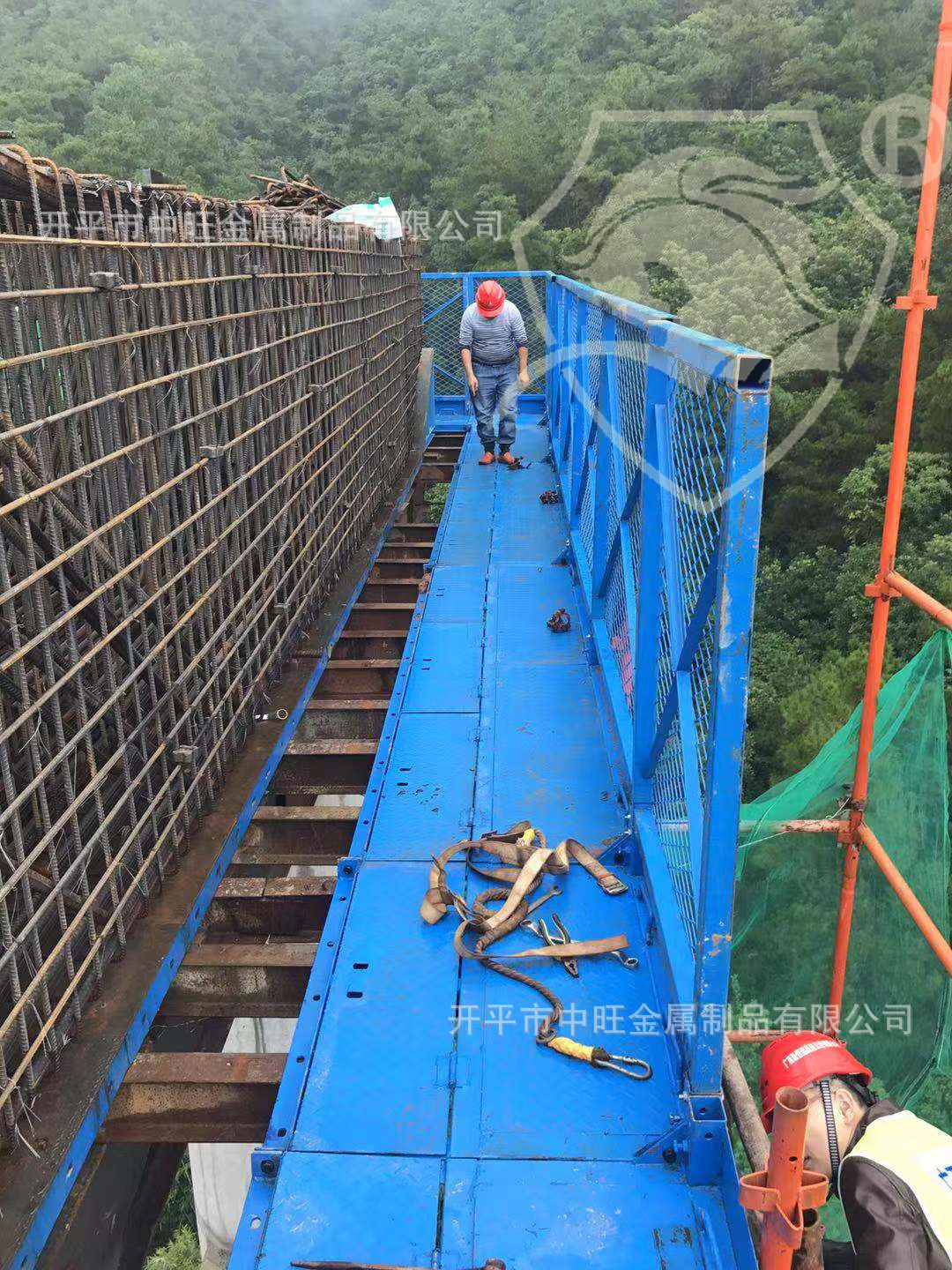 该产品的盖梁通道框前端采用活动盖板设计,方便施工人员在下方对拉杆螺丝施工操作,平台之间采用螺栓连接,装拆方便,各个平台与平台相互连接,安全可靠,避免了以前使用钢管搭设铺木板所潜在的不安全因素。此产品使用我公司特制的U型扣件将分布梁与其牢固连接起来,并在四周设置安全防护网,达到的保护