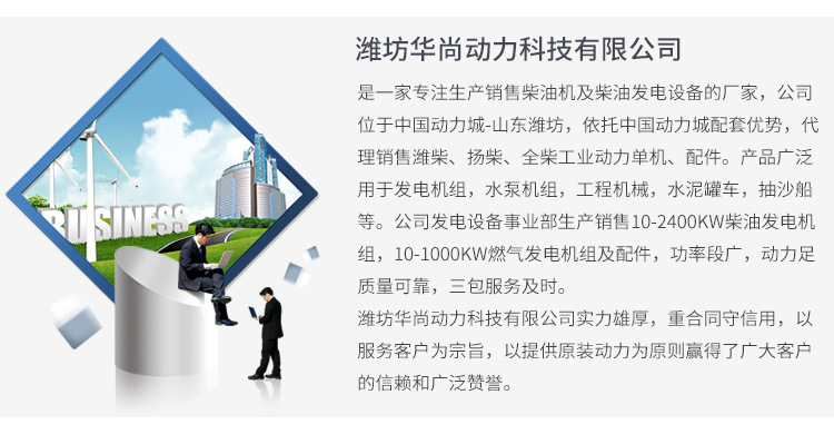 潍坊华尚动力科技有限公司坐落在美丽的世界风筝之都,素有“中国动力城”之称的山东省潍坊市,直销潍坊柴油机、潍坊柴油发电机组、潍柴原厂配件等。其中潍坊柴油机包括495系列、4100系列、4102系列、4105系列、4108系列、6105系列、6113系列、6126系列、6160系列、6170系列、斯太尔系列、道依茨系列、蓝擎国三系列等,按用途分有固定动力用柴油机、发电设备用柴油机、重型卡车用柴油机、工程机械用柴油机、农业装备用柴油机、船舶动力用柴油机等,按照功率分从8KW-2000KW,按照转速分从750转-2500转,按照缸数分有3缸、4缸、6缸、8缸、12缸等;潍坊柴油发电机组包括里卡多系列、斯太尔系列、道依茨系列,按用途分有普通机组系列、自动化系列、低噪音系列、防雨棚系列、移动拖车系列等;工程机械包括装载机、压路机、推土机、挖掘机、平地机、摊铺机、汽车吊等。我们实力雄厚,一切以诚信为本,质量保证,以薄利多销和服务客户为宗旨,赢得了广大客户的信任。