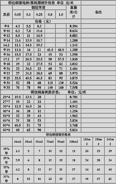2019铜包钢系列报价表