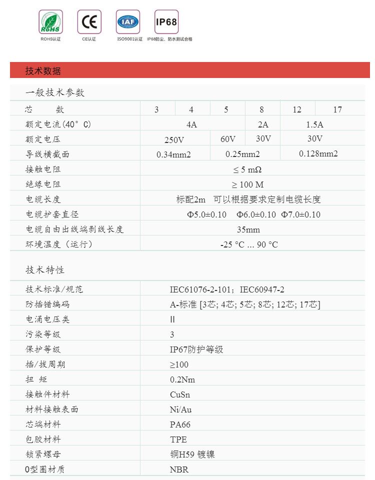 电缆连接器、传感器连接线、执行器电缆、电缆插头、电线连接器