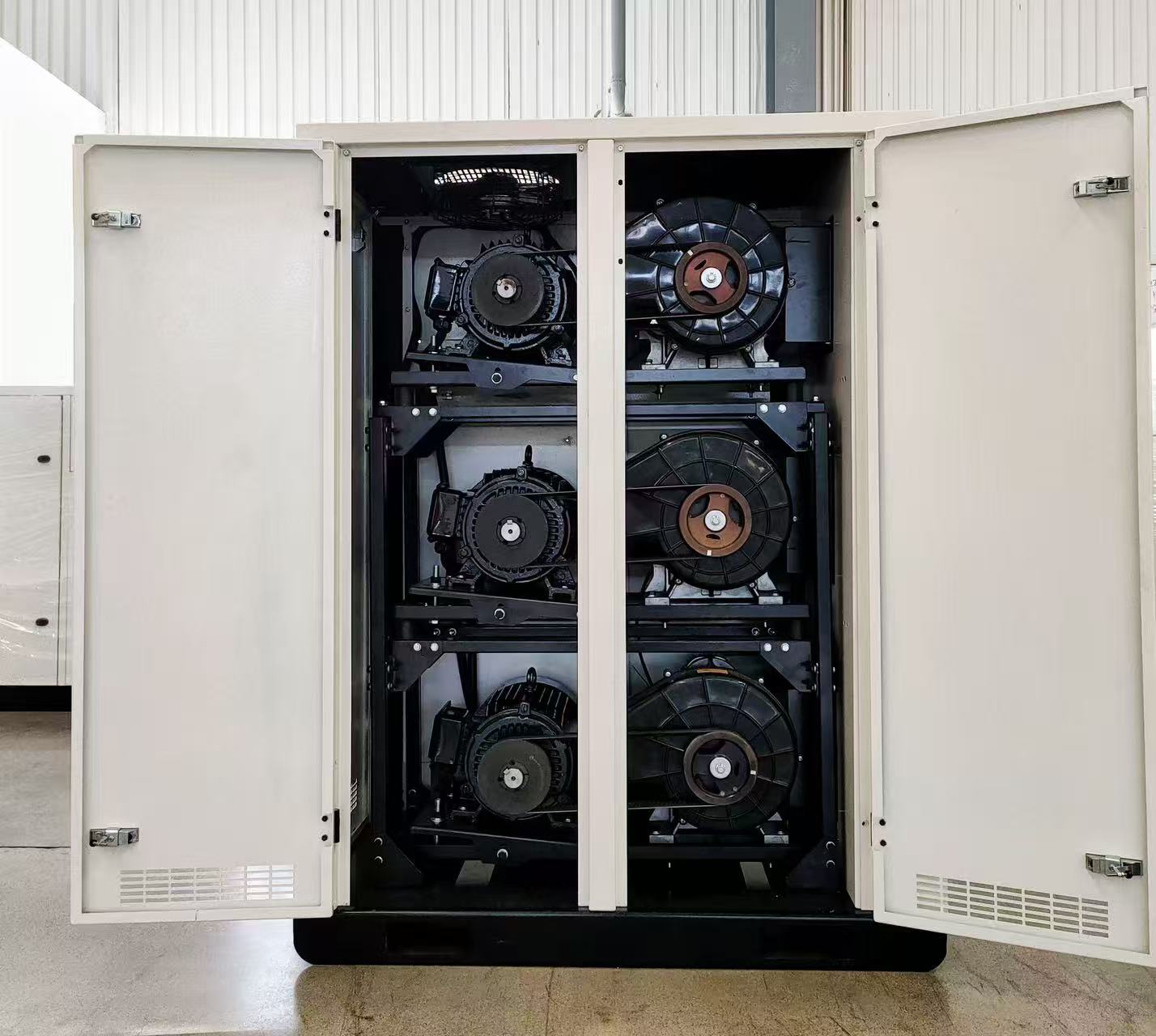 涡旋无油空压机是一种通过涡旋盘的相对运动实现气体压缩,且压缩过程无需润滑油参与的洁净空气设备。其皮带传动系统是连接电机与压缩机主轴的动力传输部件,通过皮带的弹性变形传递扭矩,将电机的旋转运动转化为压缩机的工作动力