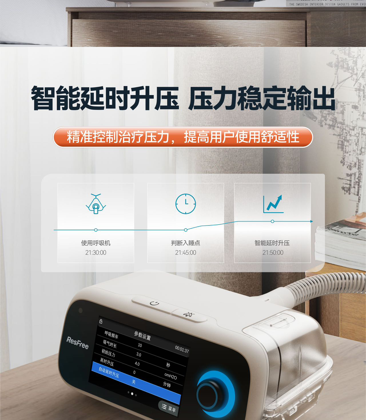 3. 开启自动延时升压,机器会监测到用户入睡,智能开启升压。