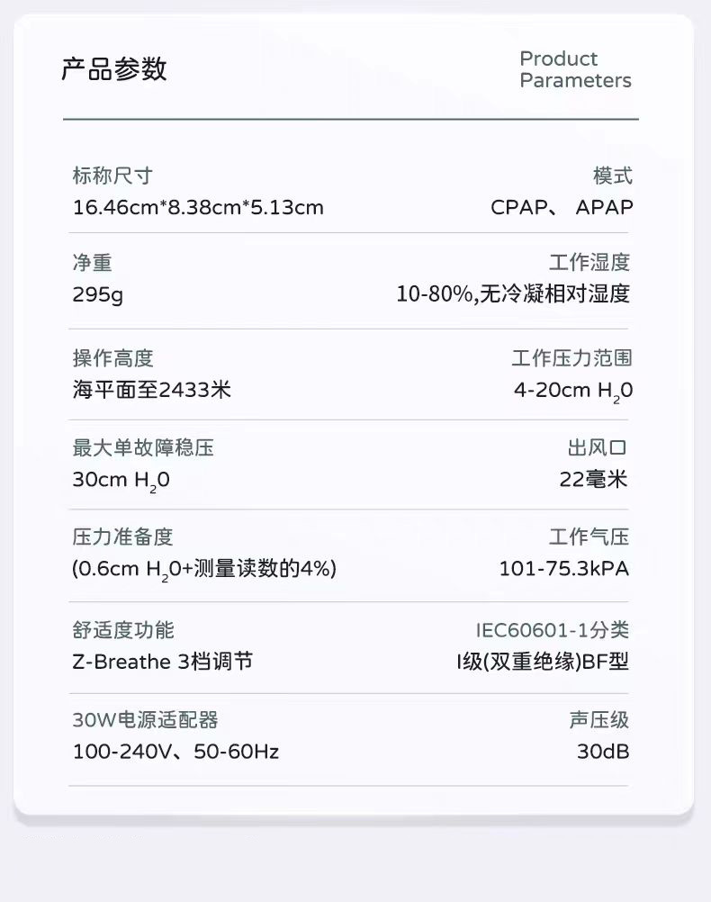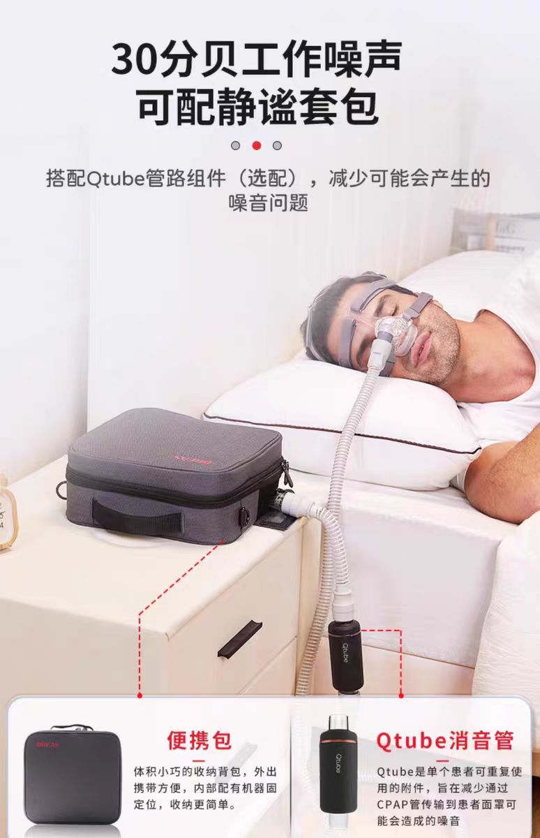 2.静音:静音套包(Z1Auto+Qtube消音管路+降噪包),入睡起始压力(4cmHz0)情况下,工作噪音仅为18.03分贝。