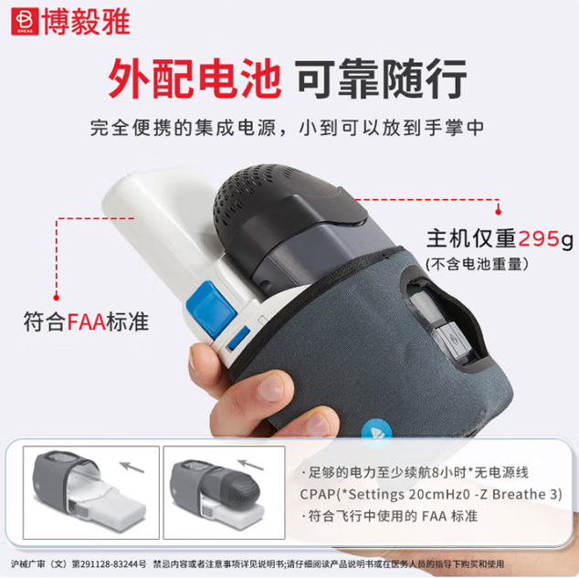 1.便携式设计:博毅雅Z1呼吸机体积小巧,重量轻,易于携带。同时,它还带有一款专门的便携袋,方便用户出差和旅行时使用。