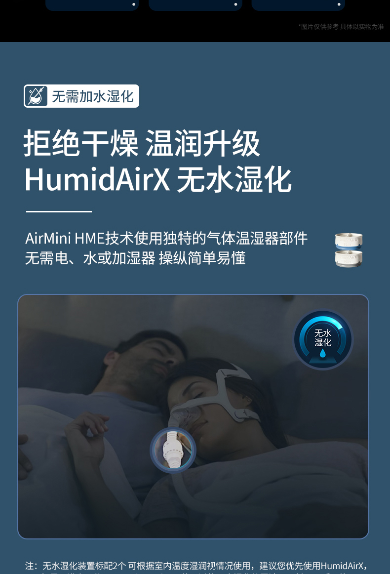 4.无水湿化器:AirMini采用无水湿化技术,不需要水箱,简化了使用过程。