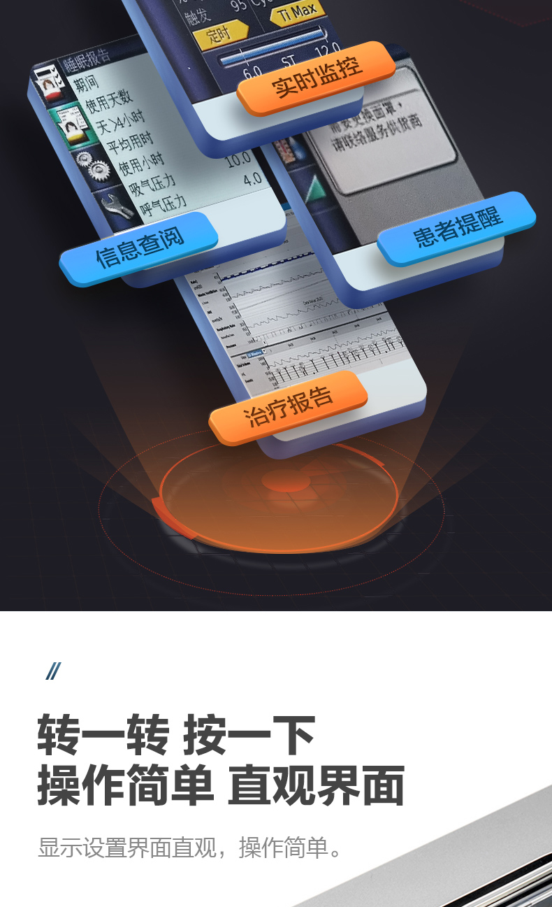 这款呼吸机配备了独特的加温管路和一体式湿化器,结合智能温控算法,整夜有效地防止冷凝水现象,保证加温加湿效果。这极大地提升了患者的使用舒适性,特别适合夜间使用。