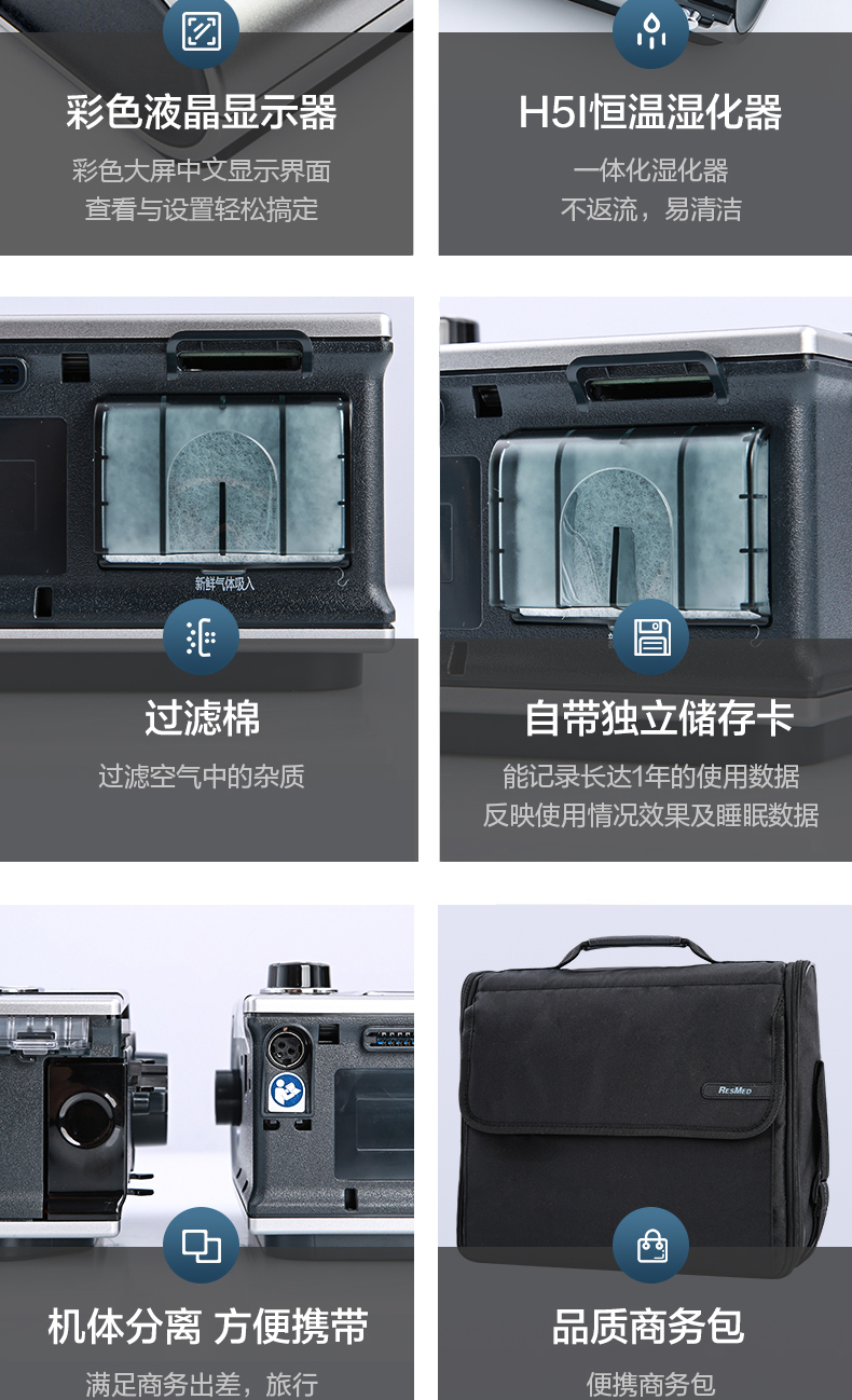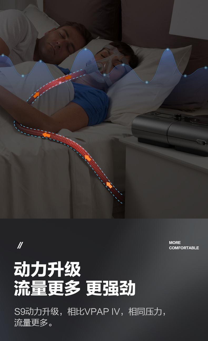 S9 VPAP ST呼吸机采用瑞思迈双扇叶低惰性马达,以其优越的静谧性在市场上令先对手。在10cm/H?O压力下,噪音水平不超过24分贝,确保患者在使用过程中获得宁静的睡眠环境。
