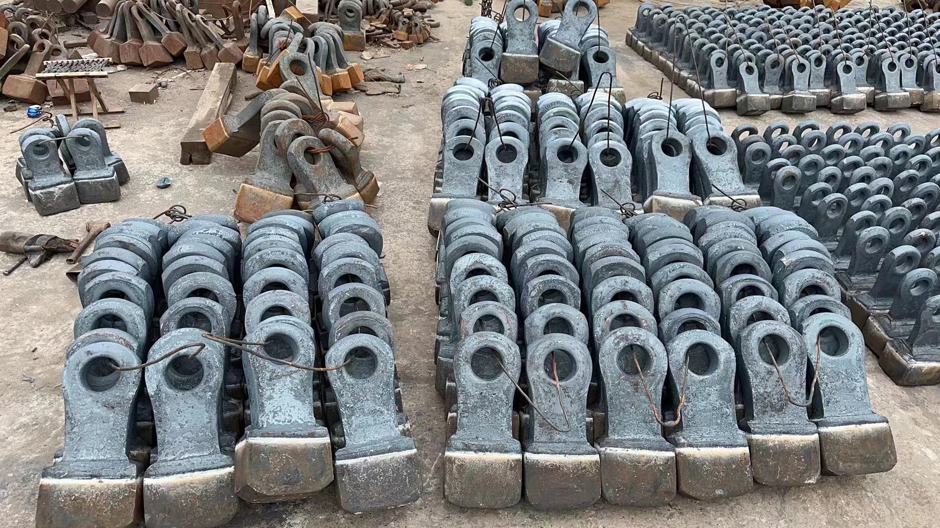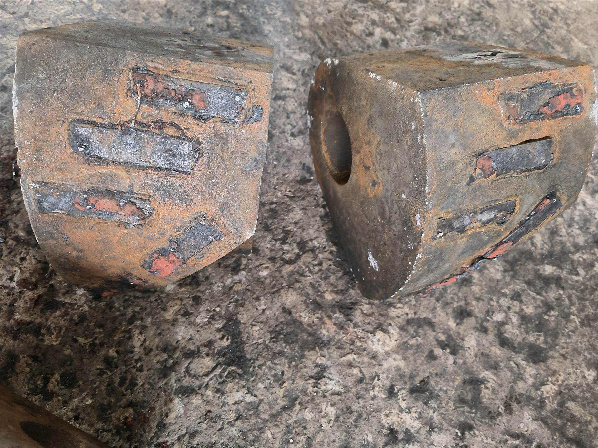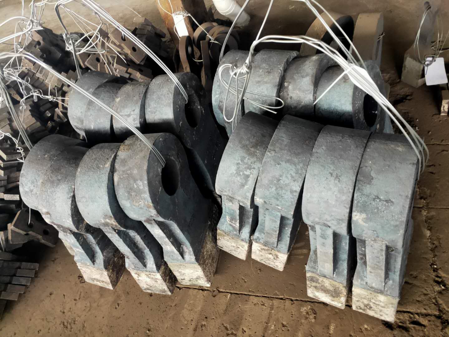锻造轨道钢锤头适用于破碎鹅卵石、煤矸石、石灰石等。锻造破碎机锤头采用火车轮毂钢(材料65Mn,抗冲击性好,韧性强,耐磨性好,不易折断)利用锻压机械对金属坯料反复锻打,使其产生变形以获得具有一定机械性能、一定形状和尺寸,在经过特殊的淬火热处理方法,保证锤头工作区域得到高硬度,高耐磨的性能。通过锻造能金属在冶炼过程中产生的铸态疏松等缺陷,优化微观组织结构,同时由于保存了完整的金属流线,锻件的机械性能一般优于铸件。锻造锤头因为价格便宜,经济耐用等特点深受广大用户青睐。