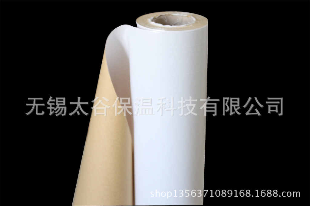 PVC白膜夹筋 普通白膜夹筋是由30U软性白膜,超密三向玻璃纤维网张,55克牛皮纸,经聚乙烯复合而成,,用作钢结构建筑和中央空调管道的绝热贴面和水汽阻隔层。