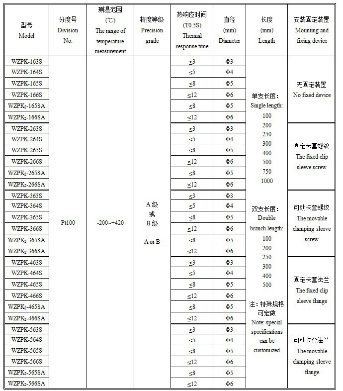 WZPK series of armoured platinum resistance The outer protective sleeve made of stainless steel, Filled with high density oxidation material insulator, Therefore, It has very strong anti pollution performance and excellent mechanical strength, Suitable for installation in the harsh environment applications.