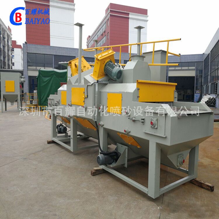 深圳百耀生产各种型号抛丸机、喷砂机、履带式抛丸机、输送式抛丸机、吊钩式抛丸机、悬链通过式、通过式抛丸机该系列钢板、型材抛丸预处理线主要由预热、抛丸处理、喷漆烘干工序组成。适用于船舶、汽车、机车车辆、桥梁、机械等行业的钢板、型材及结构件的表面除锈、涂漆工艺。