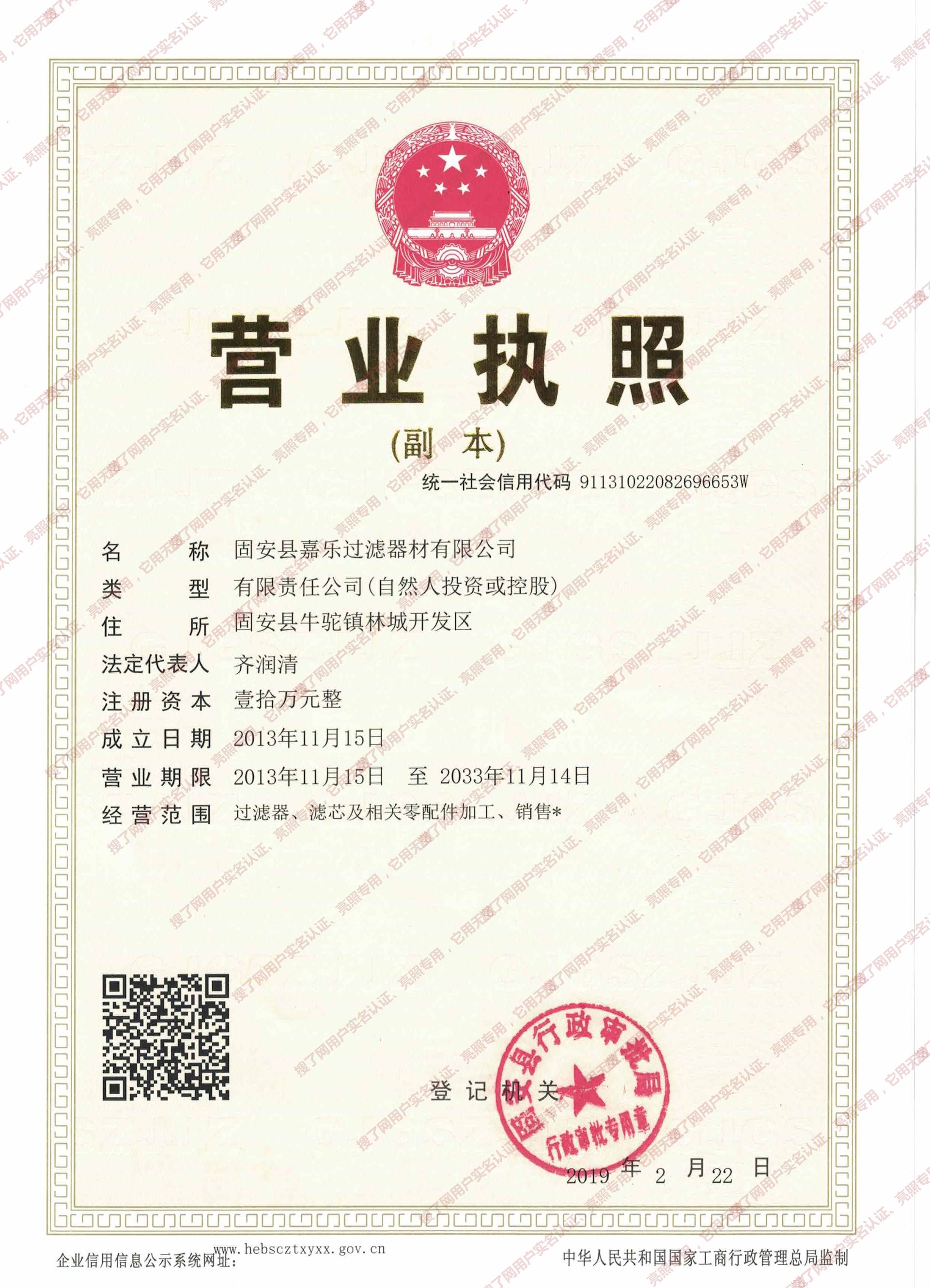 固安县嘉乐过滤器材有限公司