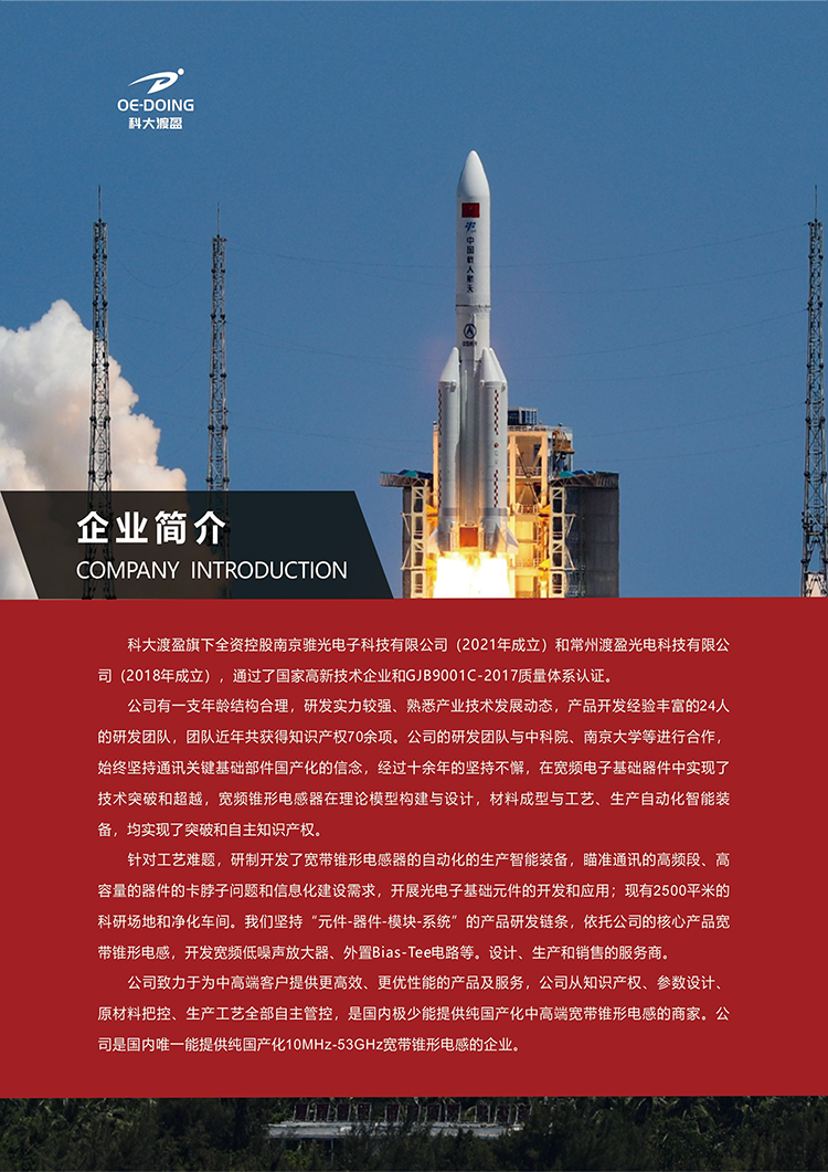 公司具有研发实力较强、熟悉产业发展动态和产品开发经验丰富的24人研发团队,近年共获得知识产权80余项。我们始终坚持通讯关键基元件国产化的信念,与中科院、南京大学、紫金实验室等进行合作,瞄准通讯的高频段,高容量器件的卡脖子问题和信息化建设需求开展技术攻关。经过十余年的坚持不懈,在宽带通讯基础器件中实现了技术突破和超越。获得了锥形电感器的理论机型构建与设计,材料成型与工艺、生产自动化智能装备等关键工艺及参数,从而实现了材料、工艺和装备的全面自主化,并形成了知识产权。