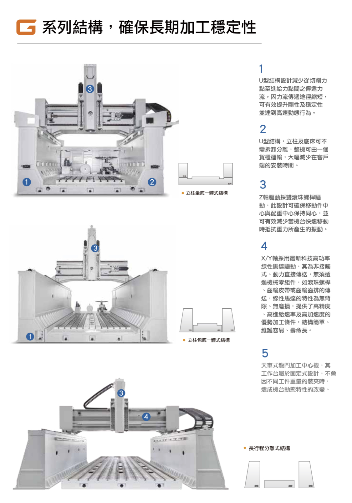 拥有的动态/静态刚性,快速进给 可达 60 m/min,加速度为 5 m/sec2以上,动力100%直接传送,无须经过机械零件传送增加动态响应性,结构简易容易维护。