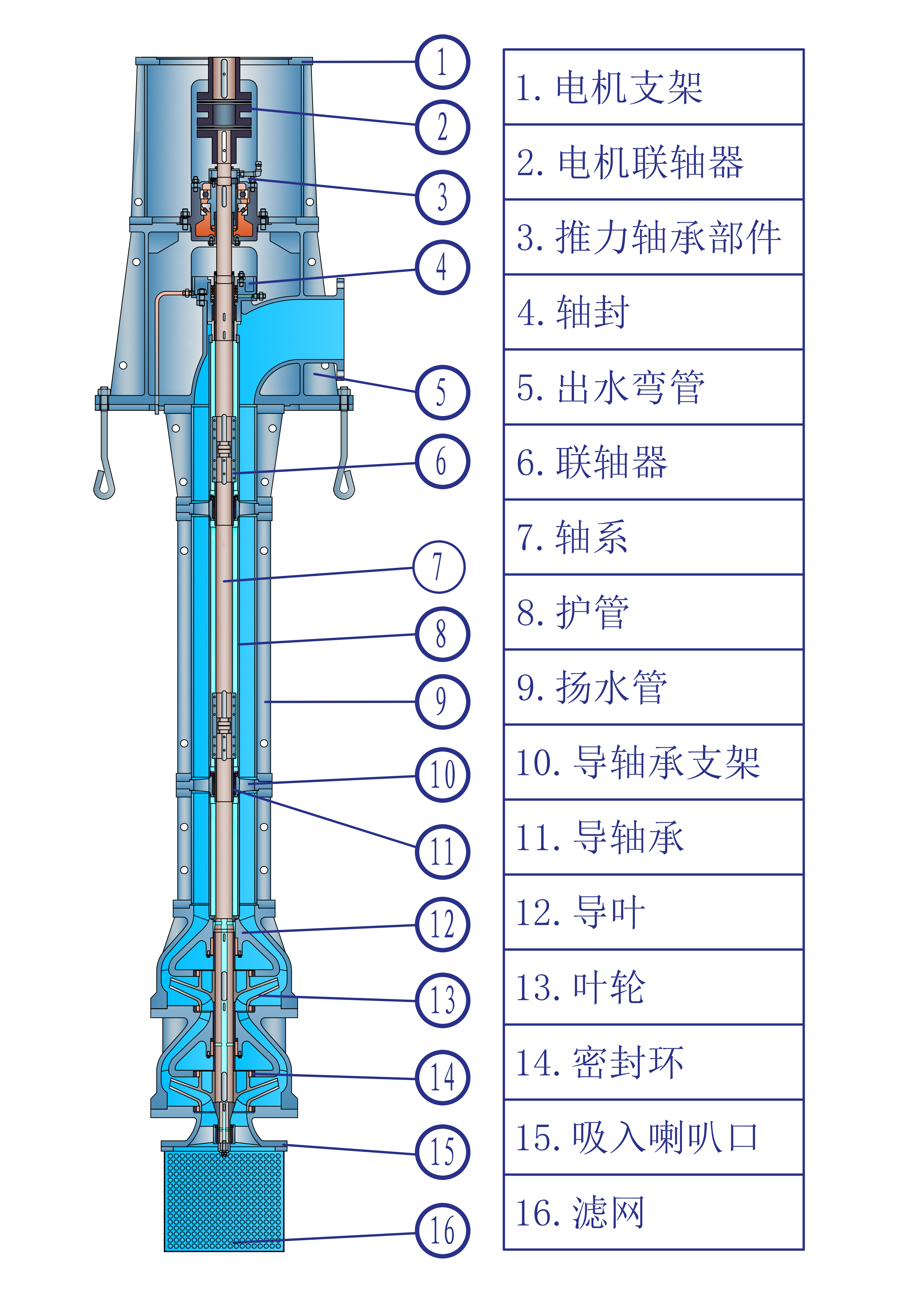 HLD系列立式长轴泵,采用浸没式叶轮,立式安装。