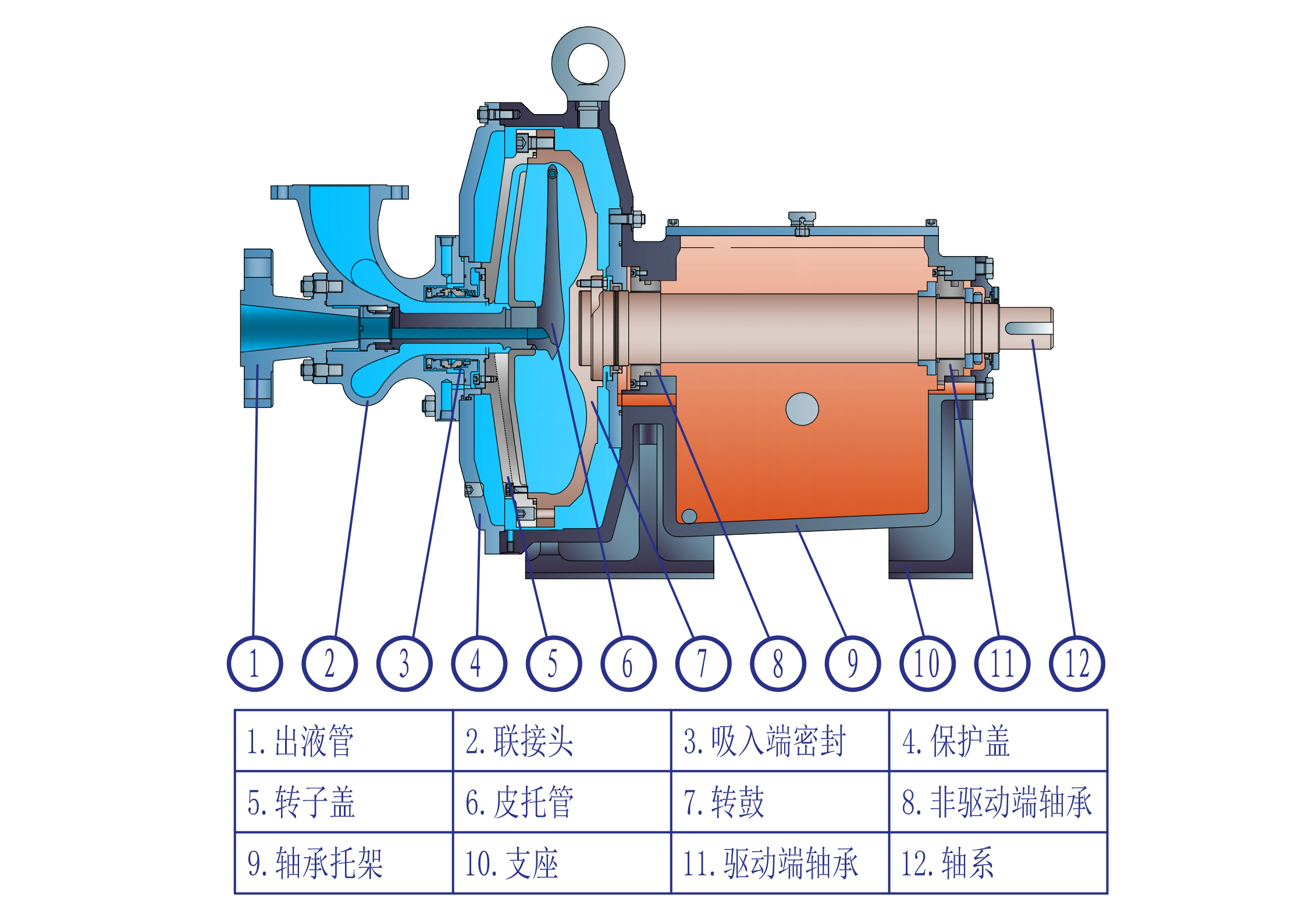 其转鼓、转子盖(叶轮廂液体同步旋转,消除了一般小流量、高扬程离心泵诸如高速泵、多级泵存在的量值很大的圆盘摩擦损 失,具有比高速泵、多级泵高得多的效率O