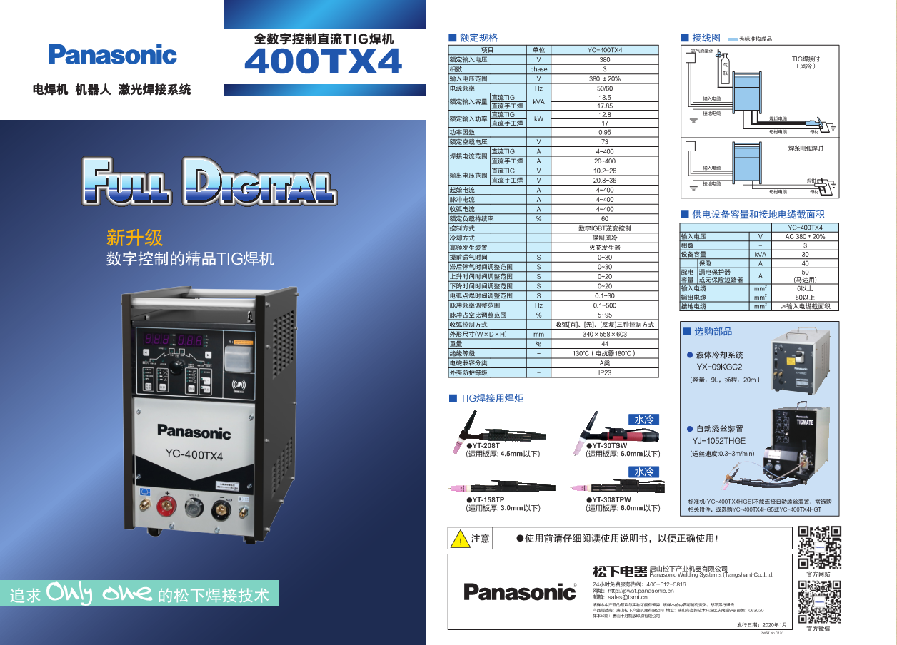 YC-400TX● 直流TIG焊/直流脉冲TIG焊/直流手工焊三种功能,用途