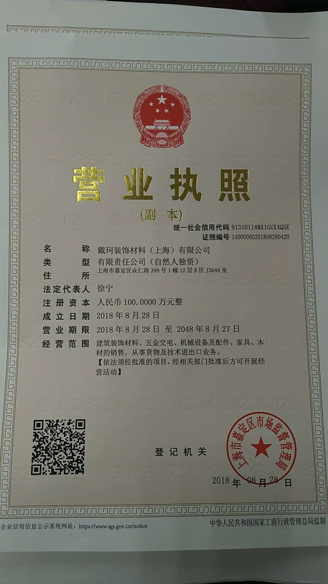 戴珂装饰材料(上海)有限公司