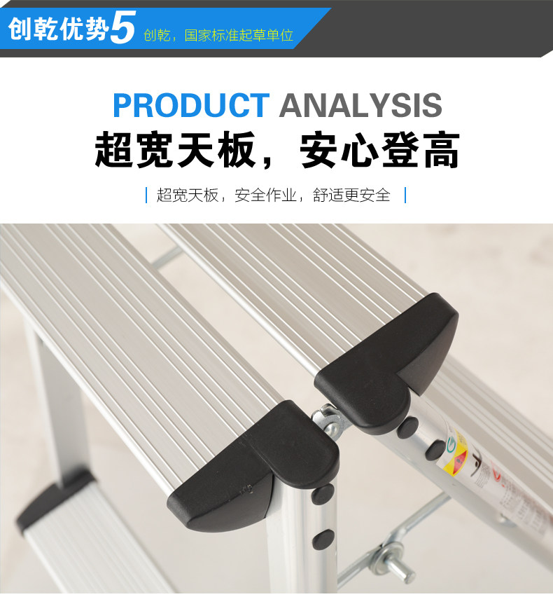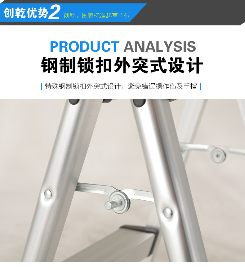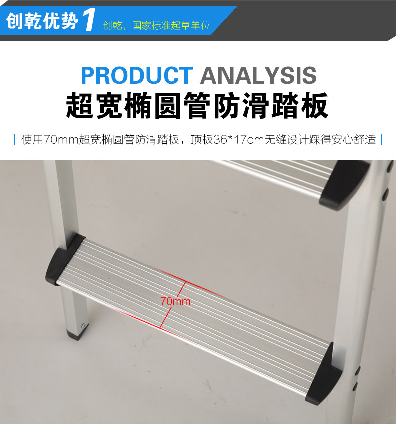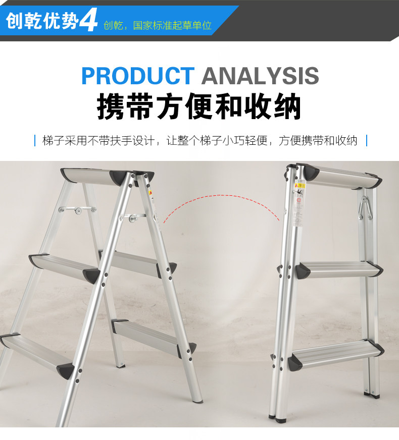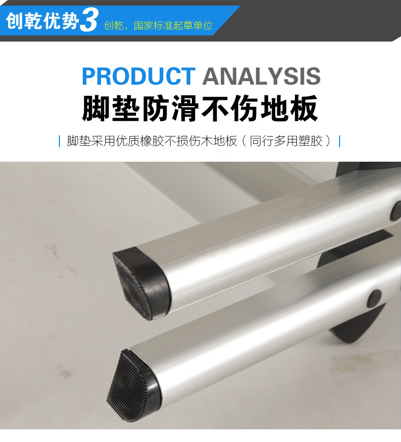 1、创乾竹节伸缩直梯子的每一节的圆管比别人的厂9CM,重叠的越多,摇晃度越低。