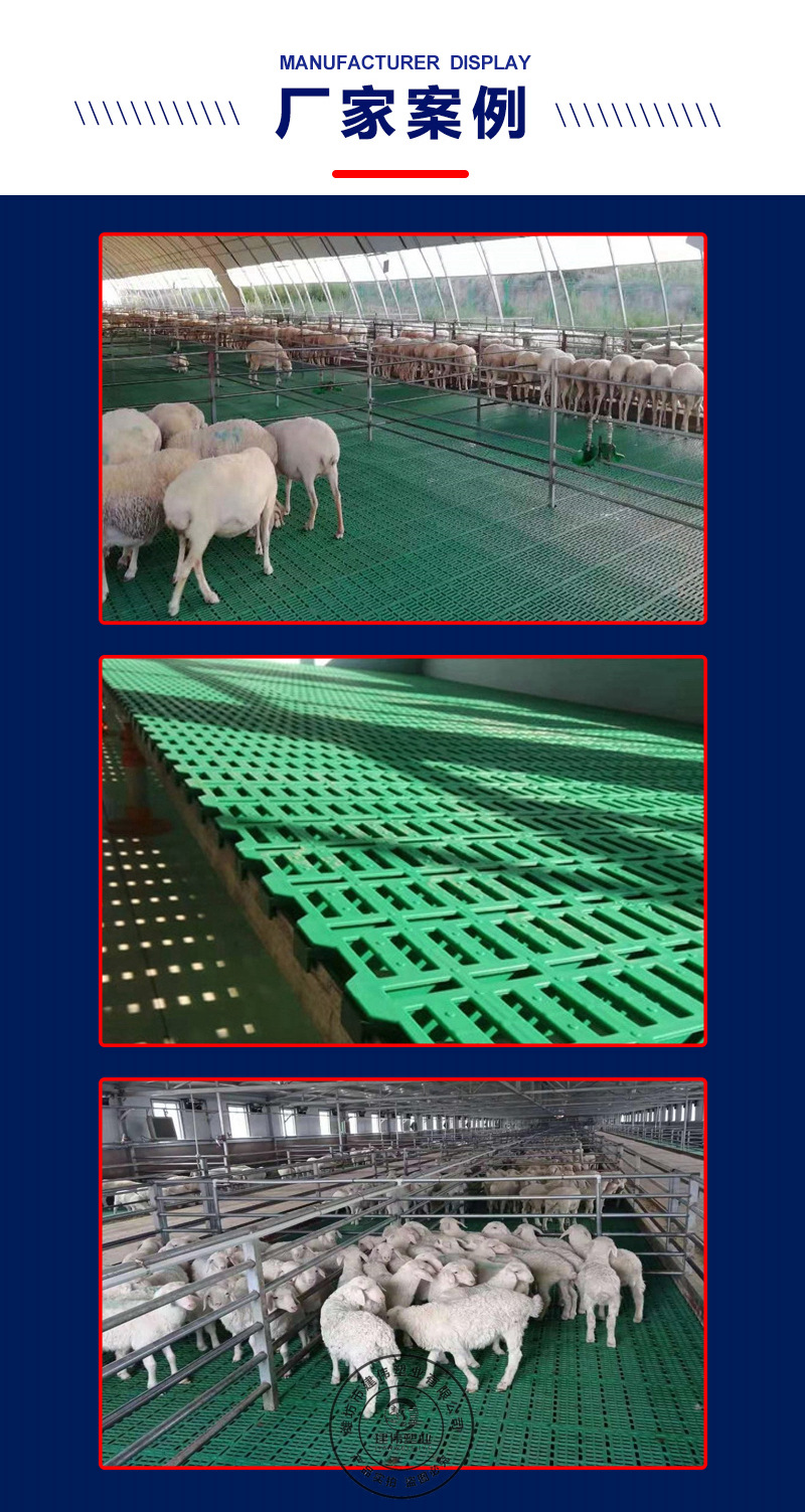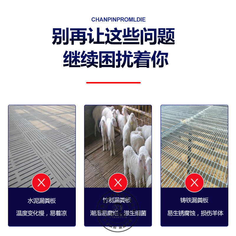 相比于竹床,塑料羊粪板不会潮湿,粪尿不会渗透到羊床里面,羊在上面不会因潮湿而生病,更重要的是塑料羊床不会起毛刺,伤害羊蹄,母羊乳房。
