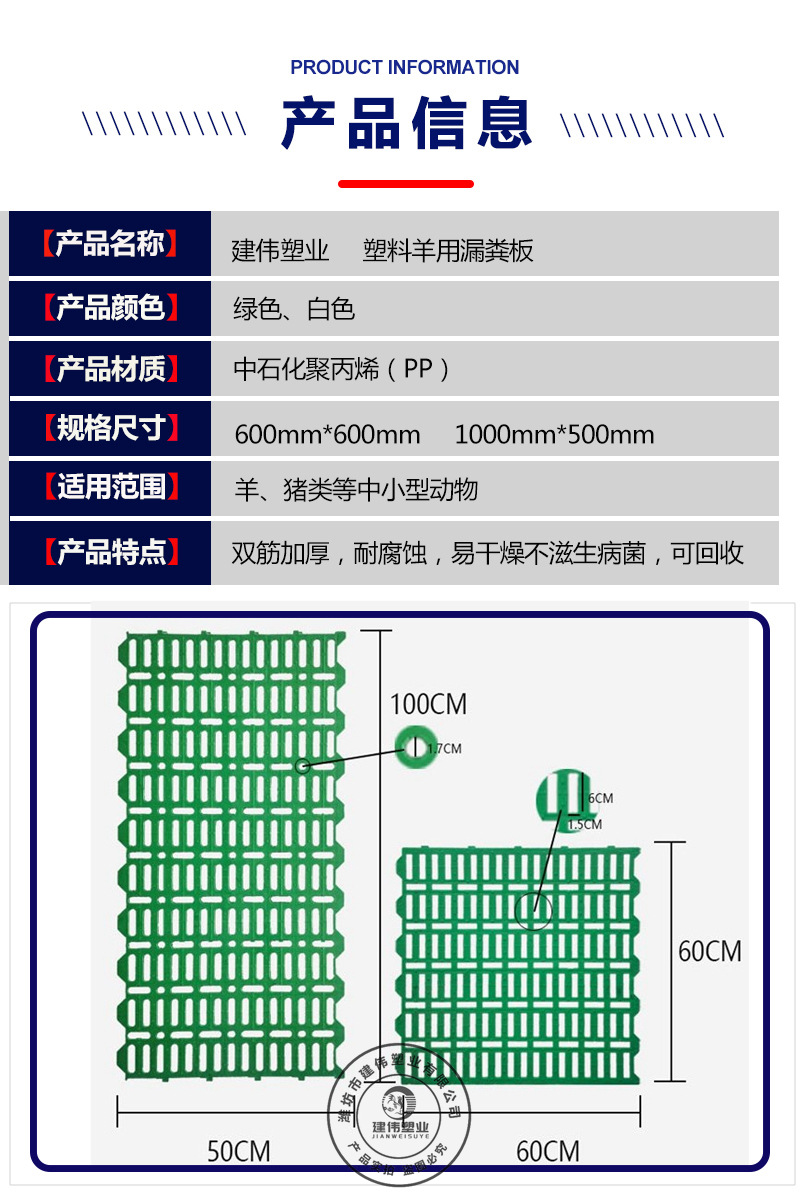 名 称:建伟塑业猪羊用塑料漏粪板