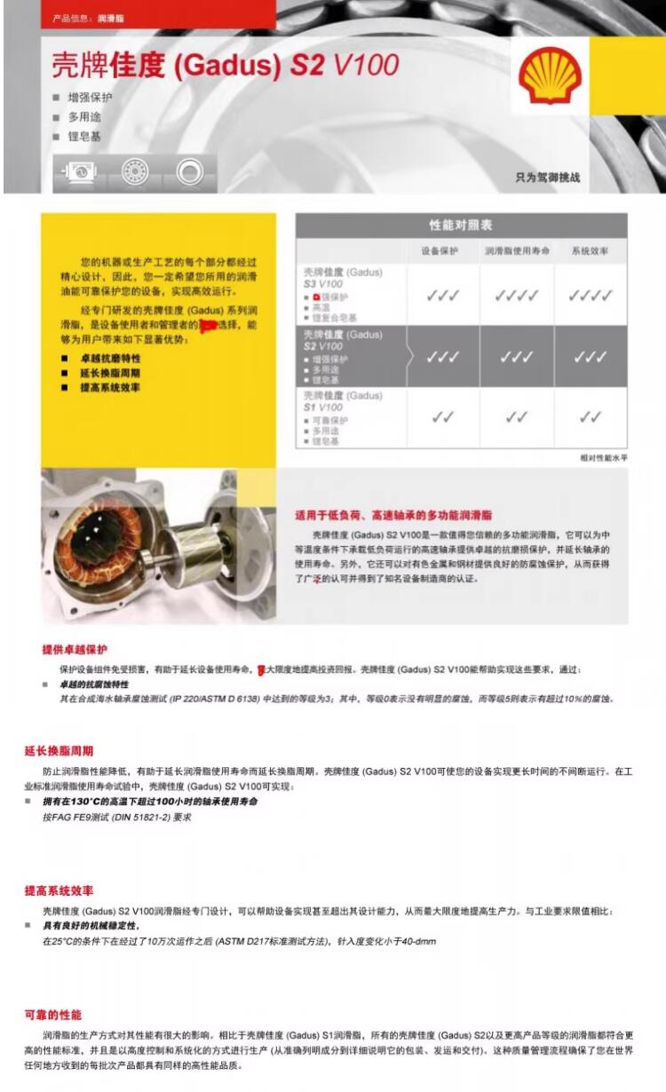 壳牌润滑脂 佳度S2V100 0、1/2多用途极压锂基脂 粘度2号黄油