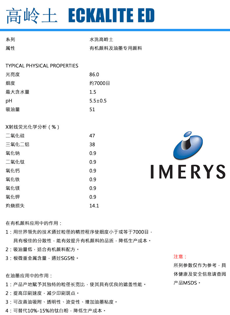 益瑞石水洗高岭土ECKALITE ED 代替部分钛白粉 油墨 涂料用高岭土