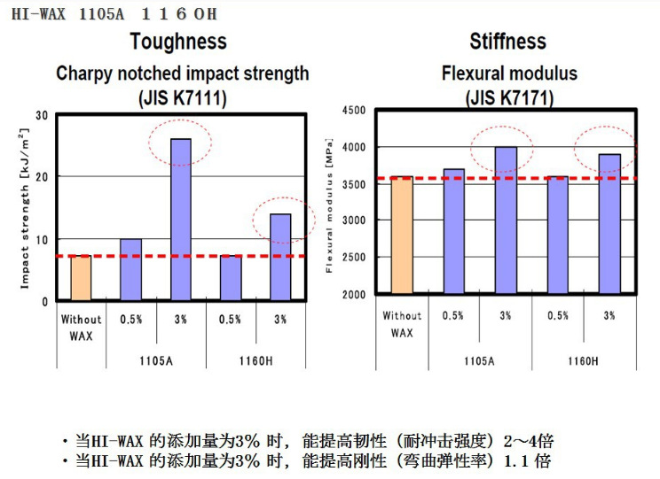 1、在PC/GF体系中添加约2-3%的1105A,能有效提高合金的冲击强度(韧性)2-4倍、保