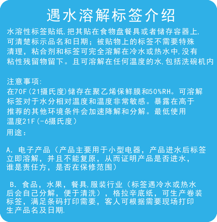 标签厂家 水溶性不干胶标签 遇水溶解标签纸