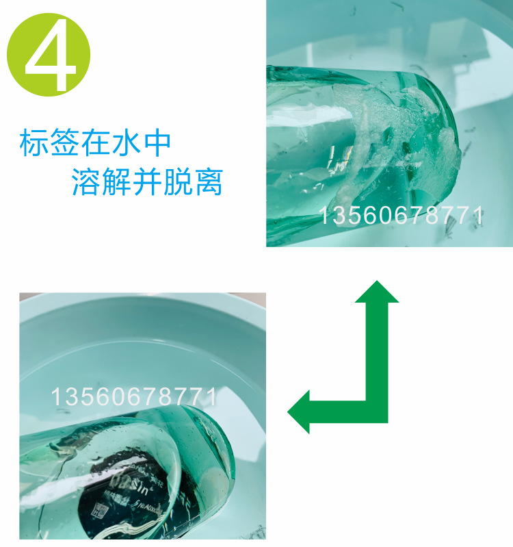 粘合剂和标签可完全溶解在冷水或热水中,不残留。