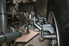 5.后桥采用AC26矿用驱动桥,主减结构设计更加合理,加强型铸造桥壳和鼓式制动器使车辆承载能力和制动能力处于国内水平。