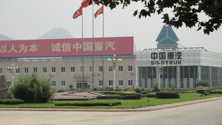 4.中国重汽自主研发的新型前轴总成,应用了整体铸造工字梁,500加强型制动器等适合矿车的零部件总成技术。