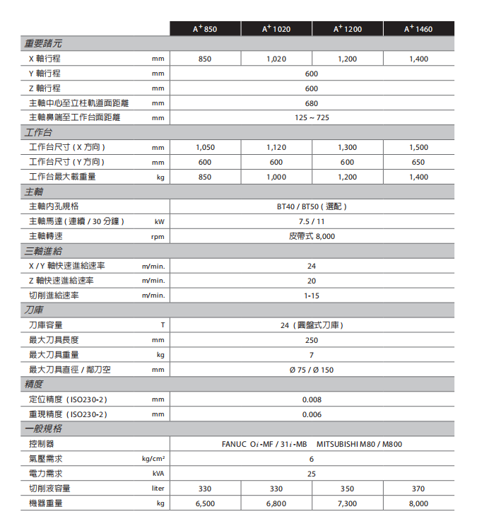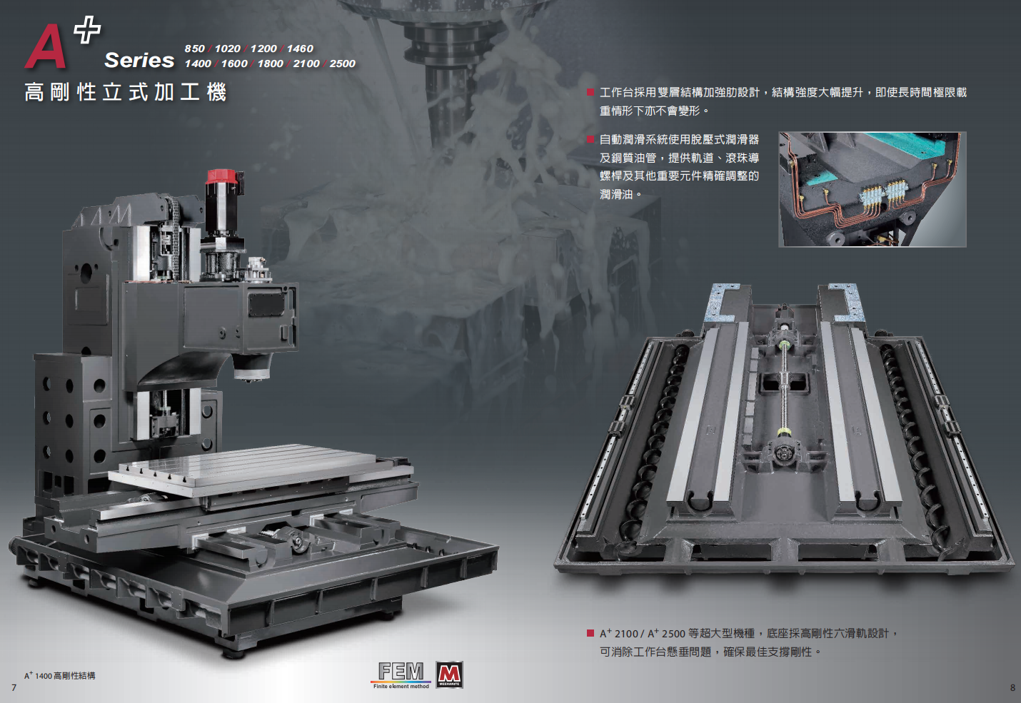 專為重切削加工需求所設計的 A+ 系列機種,具備超剛性的機體結構與廣泛的應用範圍等特性,是所有同級機種中獲得性價比的機種之一,值得您立即擁有。