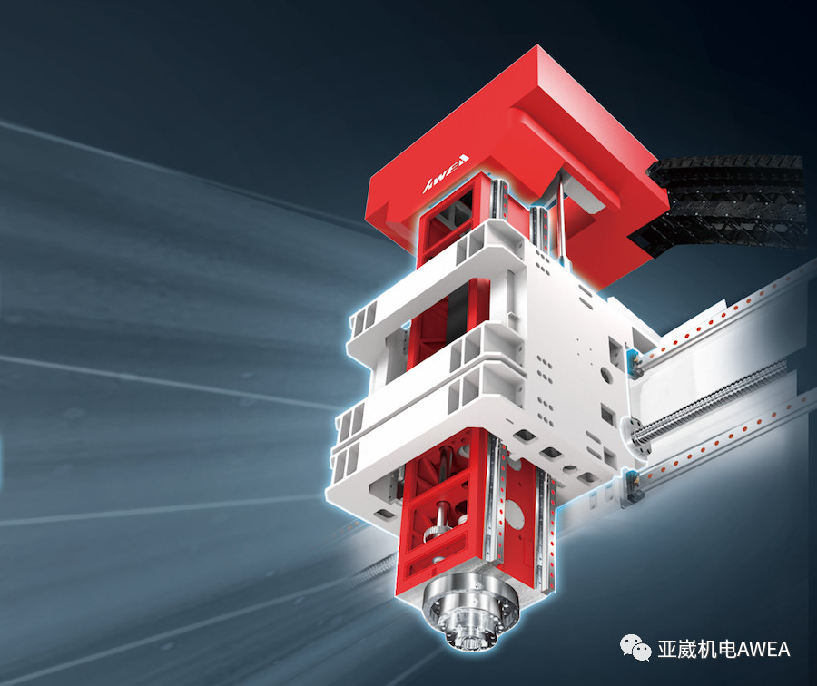 强悍的切削能力:头部采用内包式设计,高刚性、力流效应佳,减少切削悬伸、震动问题。Y 轴采用段差式高精密线性滑轨设计,提升主轴头、鞍座、横梁的整体结构刚性,缩短刀具接触点与横梁之间距,提升切削能力。